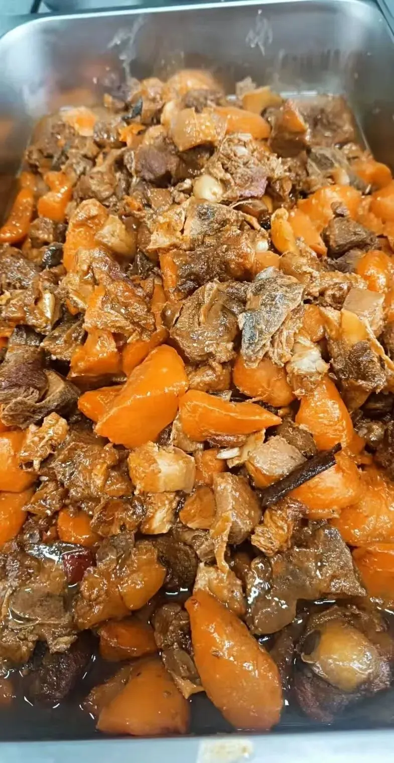 红萝卜烧排骨,香酥鸭,莲藕炒肉,小炒香干,木须肉,清炒青菜,清炒大娃娃菜,紫菜蛋汤。