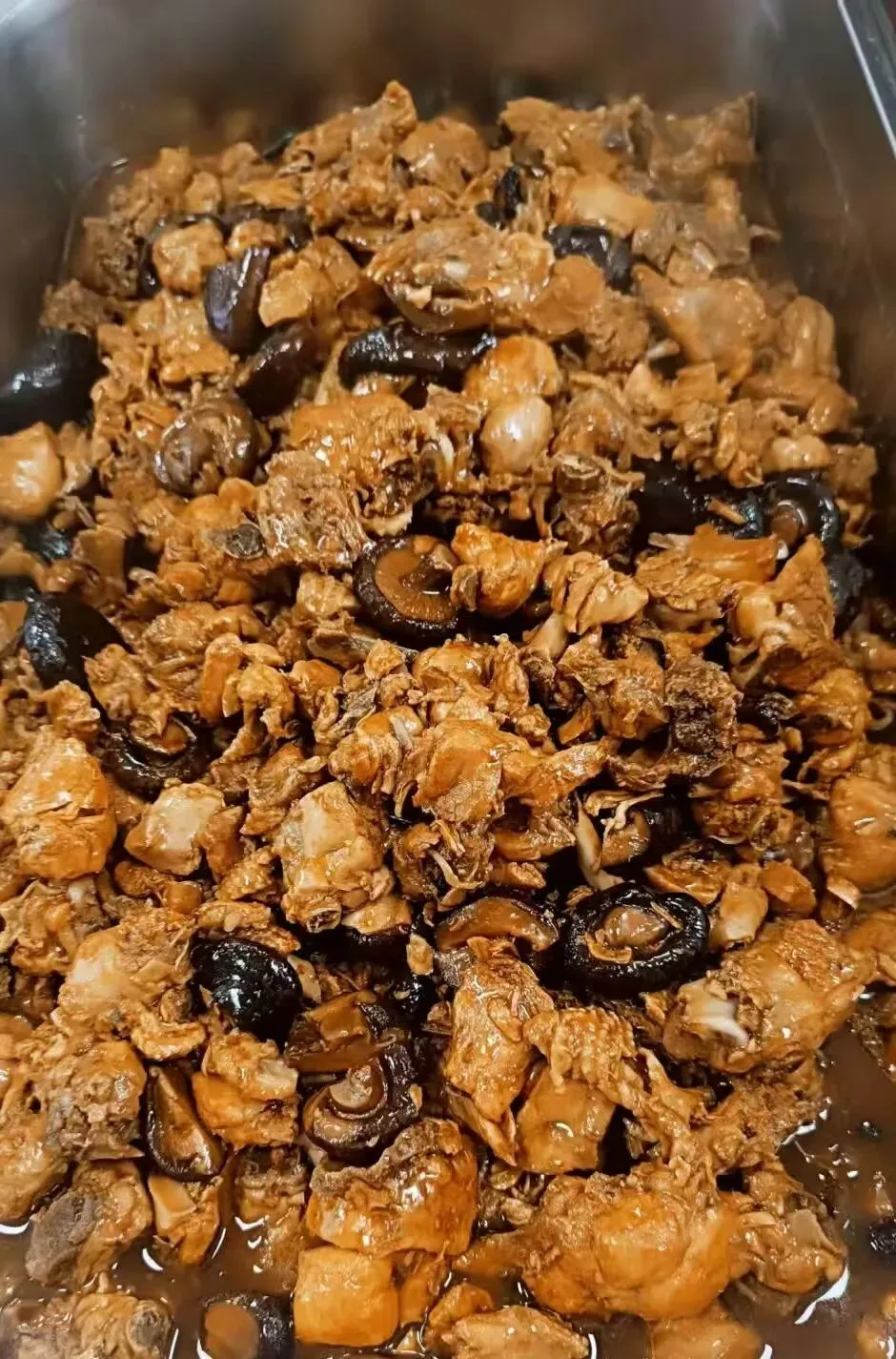 豉汁焖肉,香菇烧鸡,西兰花炒肉,辣椒炒蛋,酱烧肉沫珍珠豆泡,清炒生菜,手撕包菜,豆腐肉丝汤。