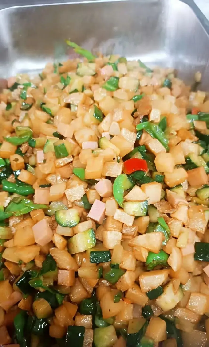 爆炒猪头肉,水煮肉片,炒三丁,莴笋白萝卜炒肉丝,辣椒炒肉,清炒油麦菜,葱香豆芽,酸辣汤。
