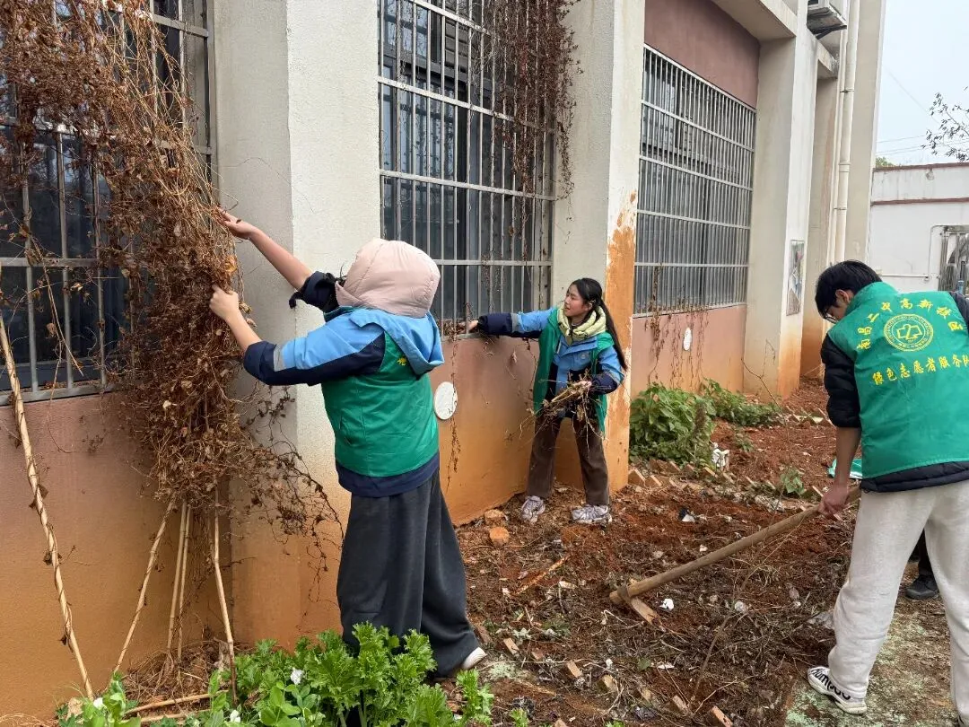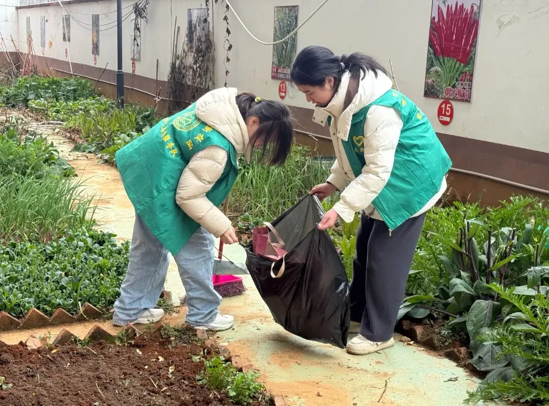 校团总支和少先队的志愿者们在校园、社区开展志愿服务。大家身着志愿马甲,有的清理绿化带中的垃圾,有的整理乱停乱放的共享单车和共享电瓶车,还有的帮助校园清理房前屋后的杂物。同学们不怕脏、不怕累,用双手为校园和社区环境增添了一抹洁净,用行动诠释了新时代青少年的责任与担当。