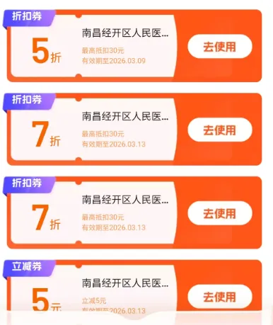 打车订单起点或终点需在南昌经开区人民医院区域内,方可核销使用。