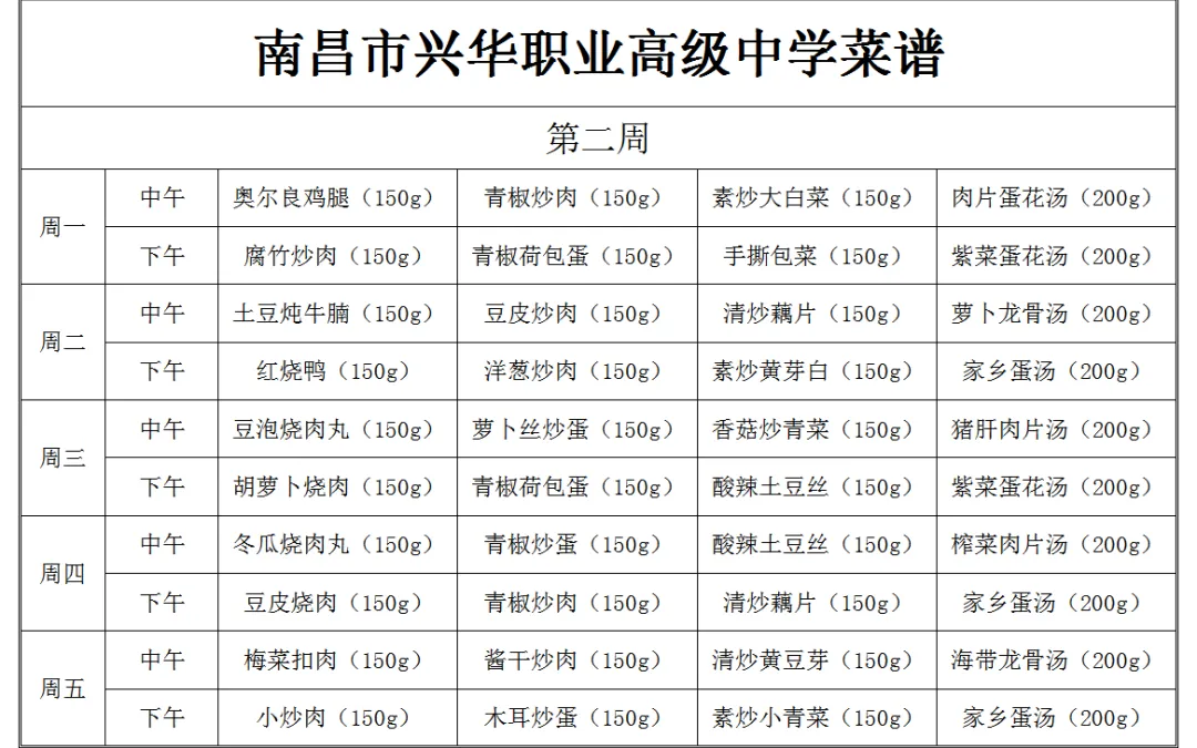 南昌市兴华职业高级中学 | 一周菜单(3.9-3.13)