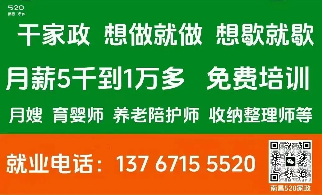 雇主是江西南昌人,目前在合肥,需要请我们江西的阿姨过去带三个月的宝宝,兼简单家务7500-8500月休四天,不休补工资,过去车费东家会报销,要求阿姨有责任心,带过宝宝