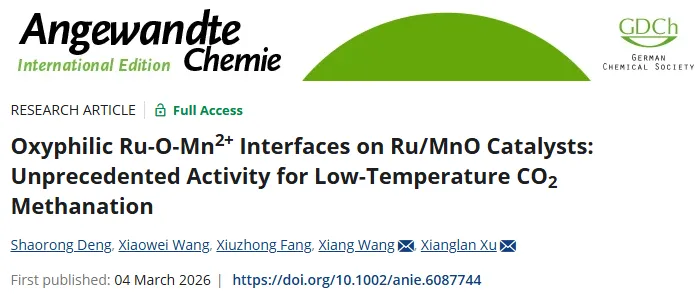 S. Deng, X. Wang, X. Fang, X. Wang, and X. Xu,Oxyphilic Ru-O-Mn2+ Interfaces on Ru/MnO Catalysts: Unprecedented Activity for Low-Temperature CO2 Methanation, Angewandte Chemie International Edition ((2026): e6087744, https://doi.org/10.1002/anie.6087744