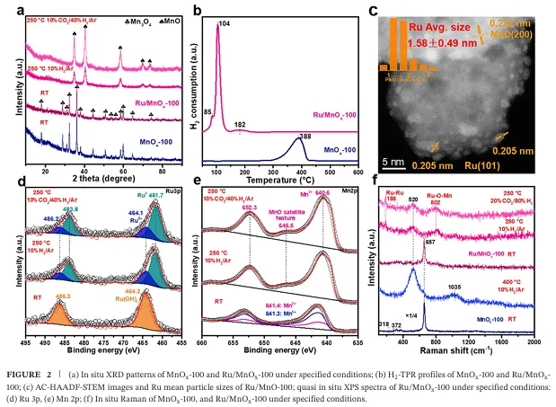 催化剂设计的普适性:本研究不仅限于Ru基催化剂,还成功将MnO介导的界面工程策略扩展至Ni基催化剂体系,实现了Ni/MnO催化剂在低温CO₂加氢反应中的高效催化性能。这一发现证明了该策略的普适性,为开发多种金属基高效CO₂加氢催化剂提供了广阔前景。
