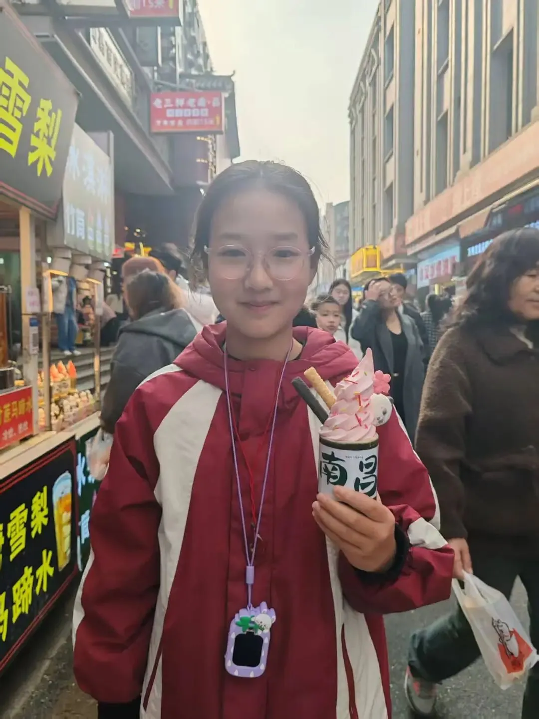 走出历史,人间烟火扑面而来。我们转入珠宝街,寻一家小店,一碗拌粉,一盅瓦罐汤,便是南昌最真实的味道。粉劲道,汤醇厚,鲜辣与温暖交织。女儿吃得鼻尖微红,眉眼弯弯,旅途的倦意烟消云散。