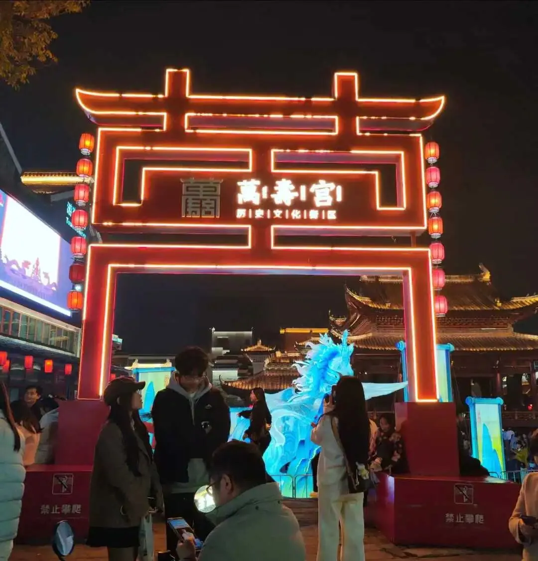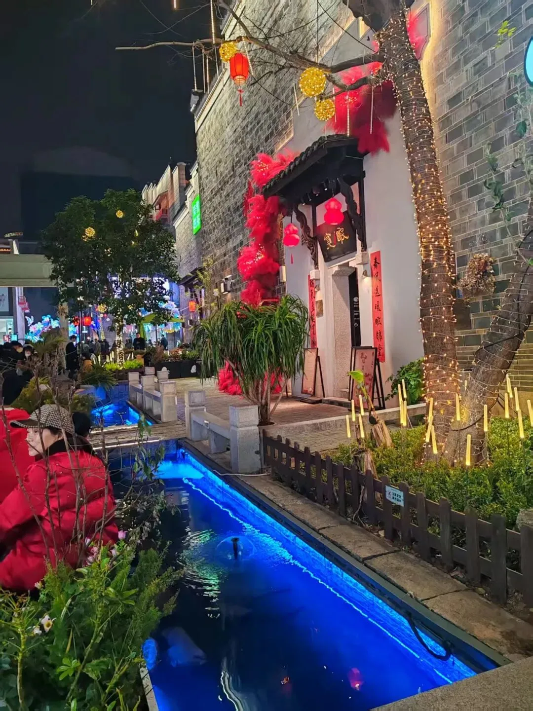 傍晚安顿好住宿,简洁干净的房间仅需146元,性价比十足,为旅途添了一份踏实与暖意。夜色渐起,华灯初上。我们走进万寿宫街区。年味尚在,千年文脉与市井烟火在此相遇。牌楼流光,灯笼轻摇,青石板路蜿蜒,灯影映在水面,如星河落人间。