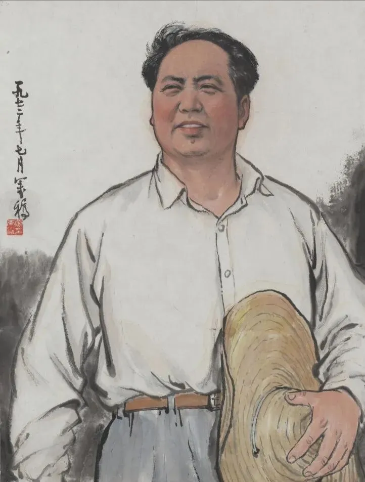 纸本彩墨《毛委员在苏区》(1961年)61x45cm