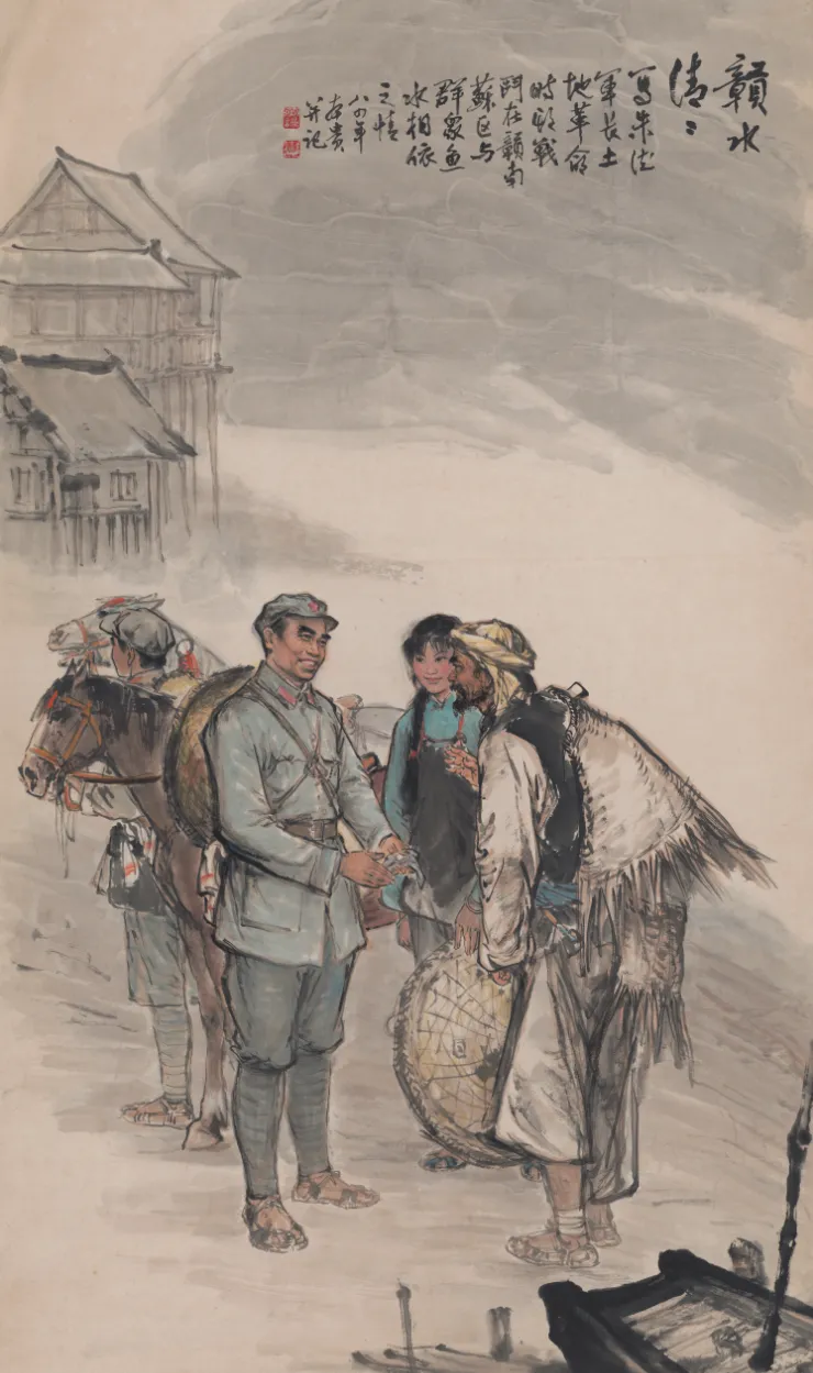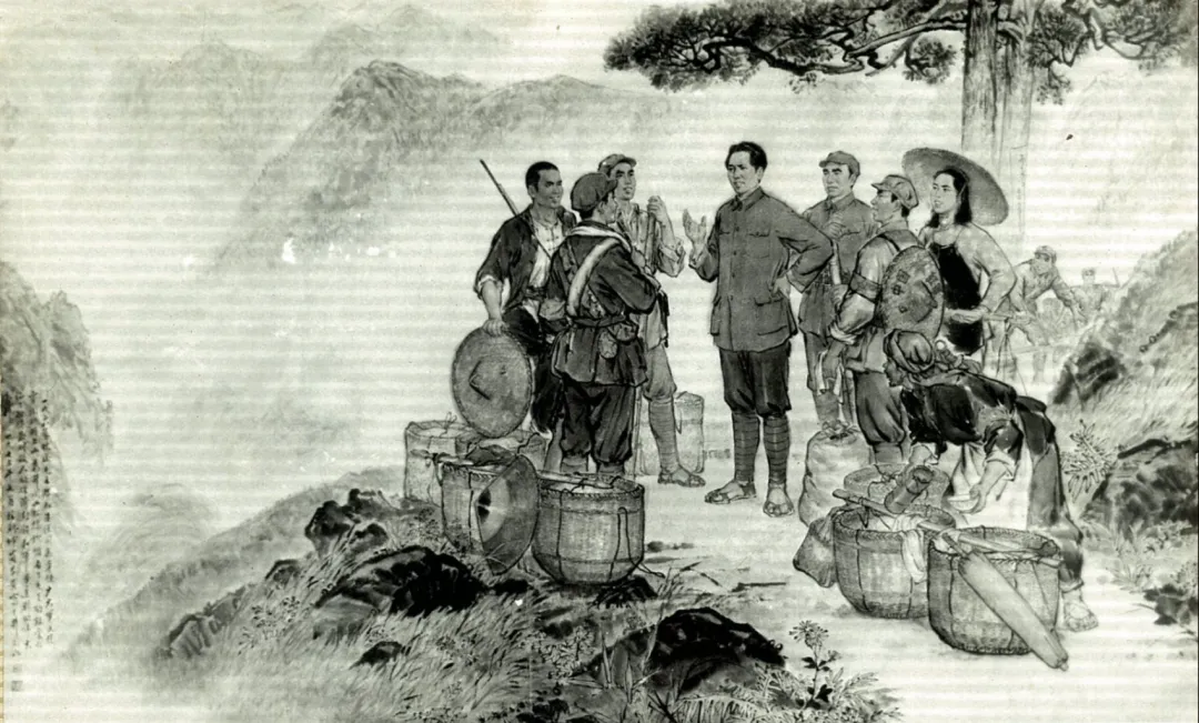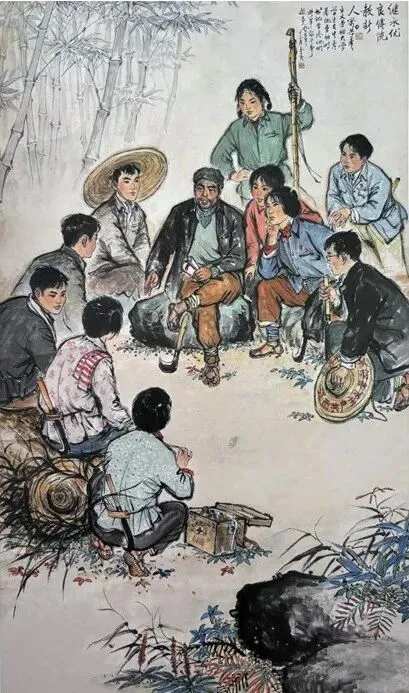 纸本彩墨《毛委员挑粮上井冈》(1960年代)