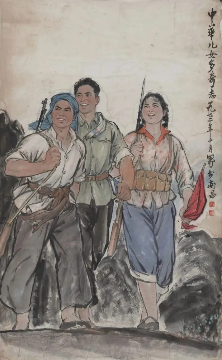 纸本彩墨《中华儿女多奇志》(1972年)