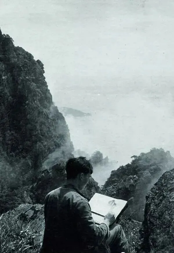 1962年在庐山采风期间速写云雾中的五老峰