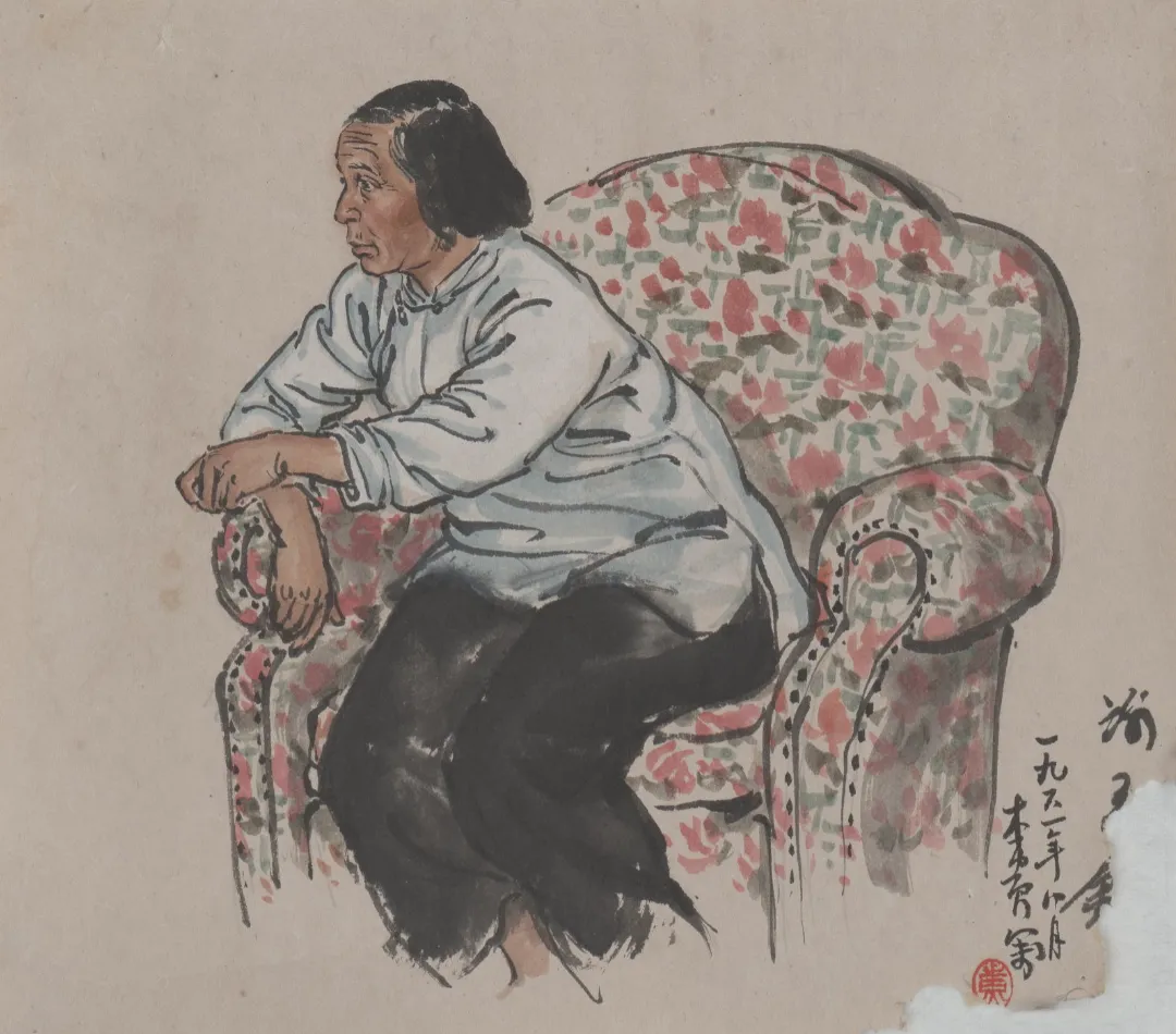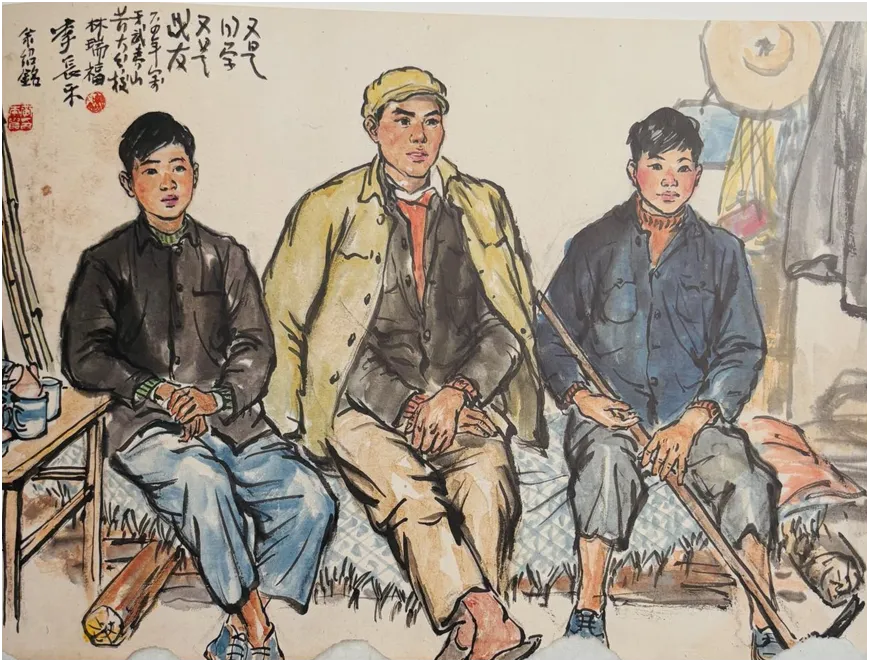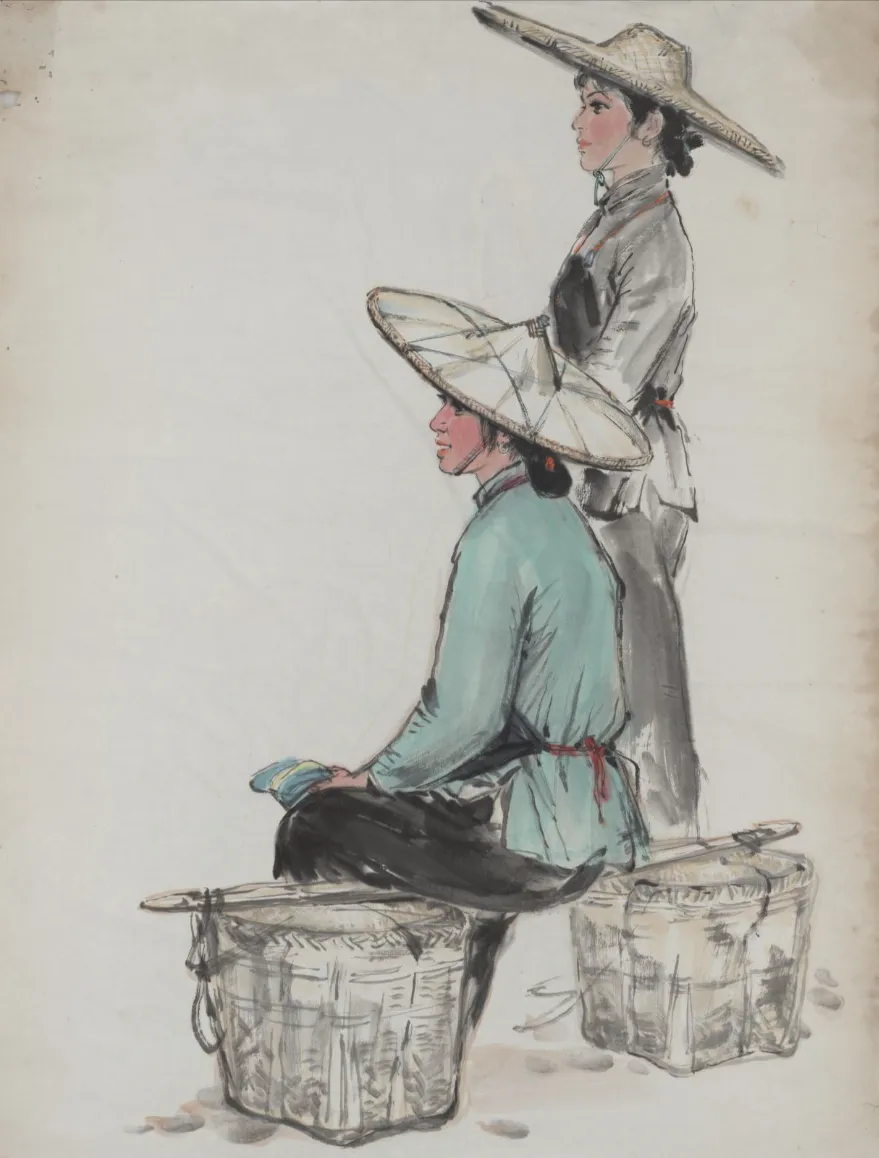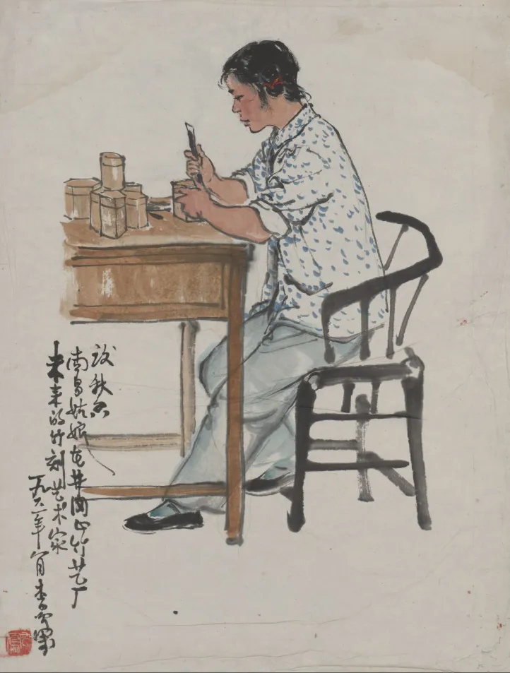 纸本彩墨《公社社员》(1961年)