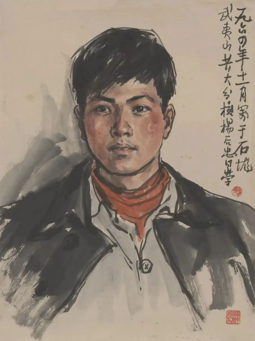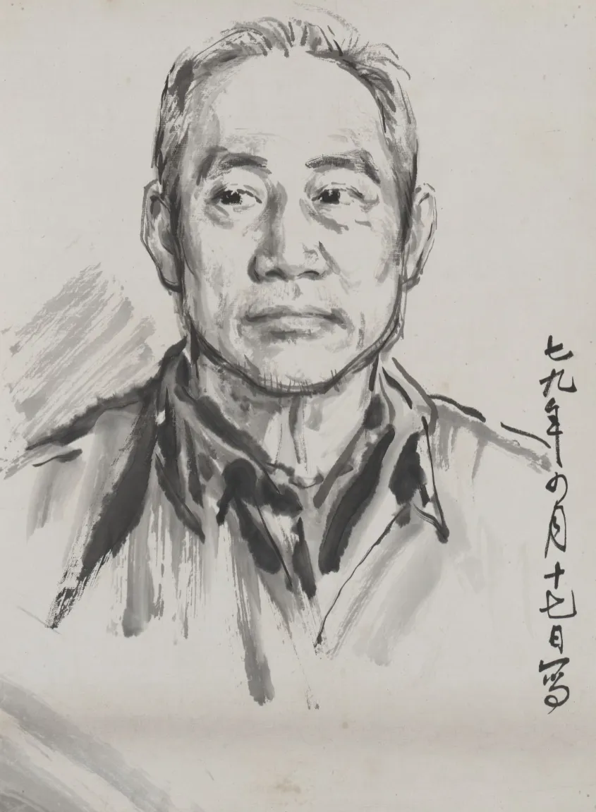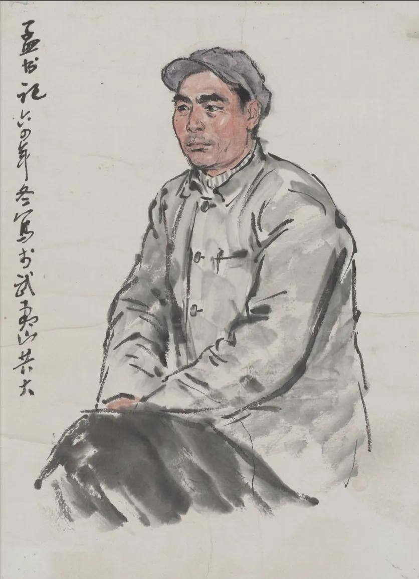 释文:咱们的好生产队长。火箭队队长丁长华同志造像。一九六四年中秋,本贵试写。