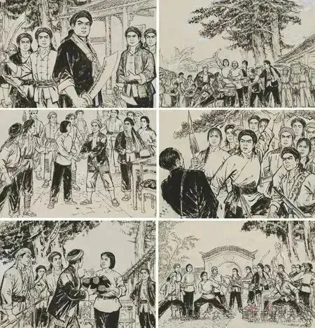 1974年,革命现代京剧《杜鹃山》全国热映,由京剧而评剧、话剧,由电影剧照至绘画本连环画,《杜鹃山》“衍生作品”一时兴盛,这里面,由黄本贵主笔,邹达清、吕建陶联袂创作的《杜鹃山》连环画是最为成功的,而成功的原因除了画技本身,它还是一部汇聚了众多“江西面孔”的精品连环画。