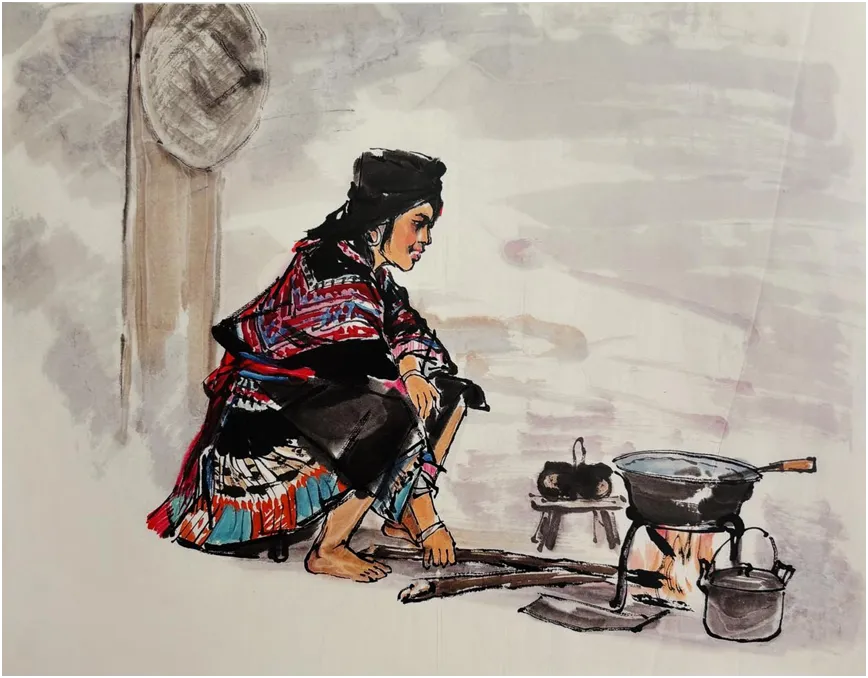 作品名称:《火塘前的瑶女》