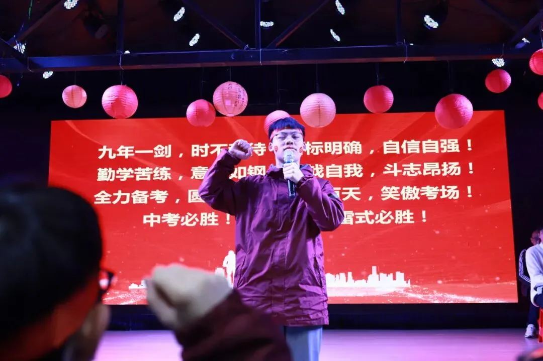 初三(2)班刘思泽同学代表初三年级全体学子发言。回望近九年的求学路,我们披星戴月,寒窗苦读,为的就是在这一刻厚积薄发。他还分享了自己的学习心得:务必紧跟师长步伐,筑牢知识根基;善于整理反思,实现精准突破;合理安排作息,保持平和心态。最后鼓励大家拼搏这一百天,用优异的成绩回报师长、成就自我!