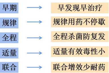 早期、联合、适量、规律、全程是结核病治疗的核心原则。私自停药或间断服药可能导致治疗失败、复发甚至耐药,必须严格遵从医嘱。