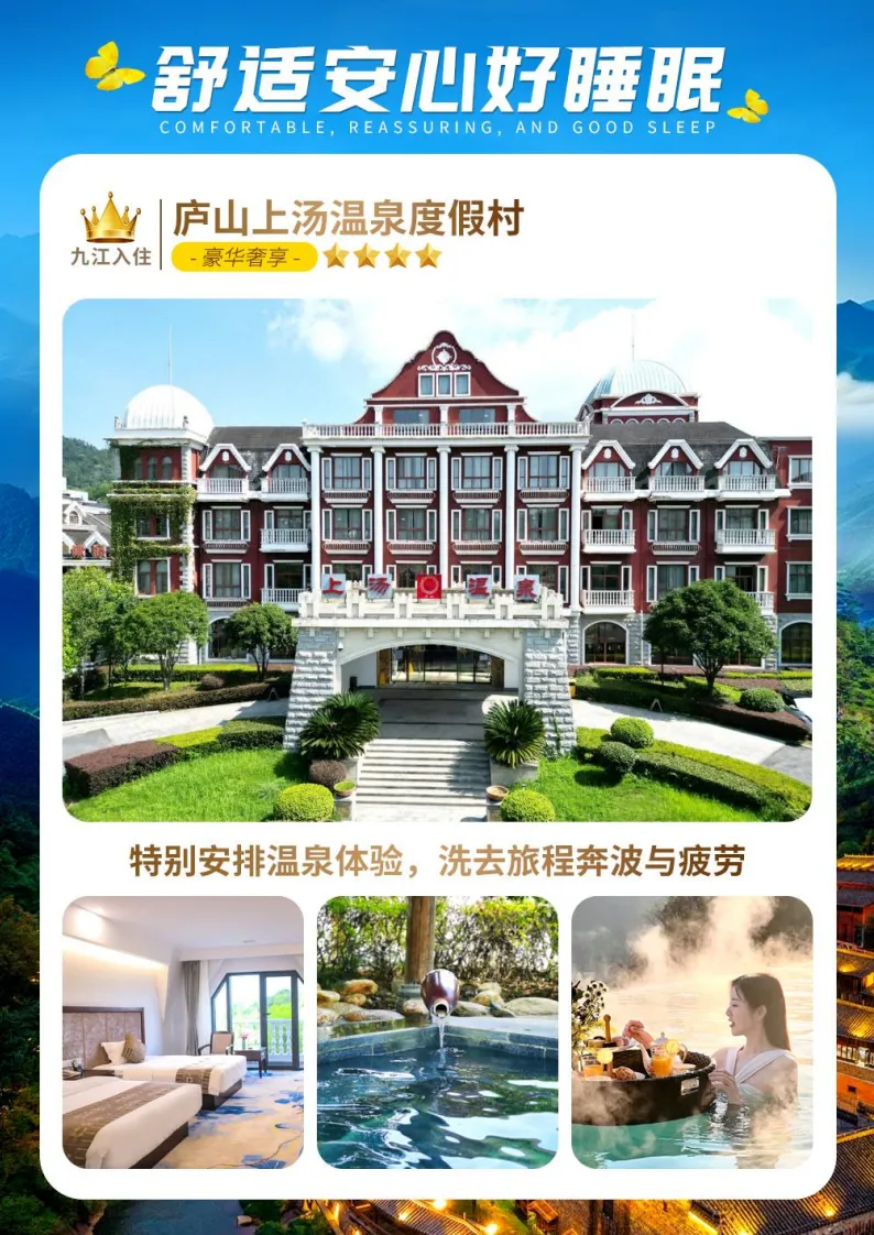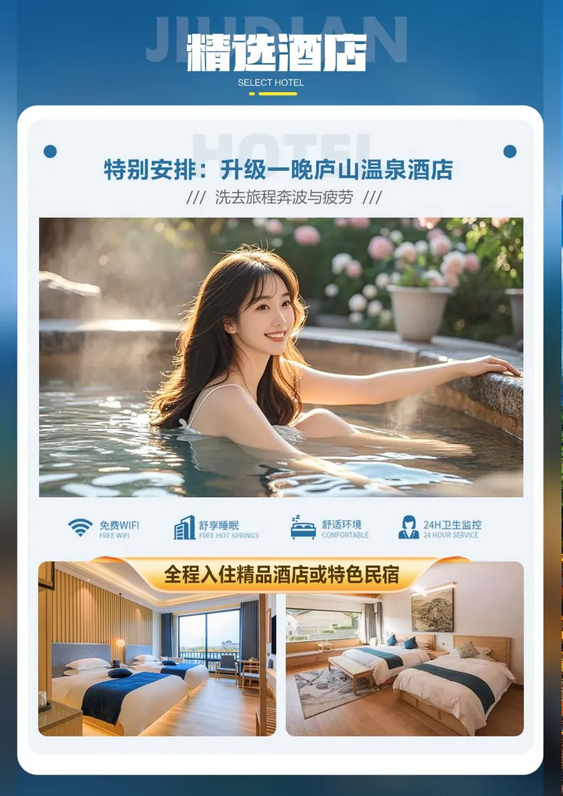 ▷【舒心之旅】——全程入住精品酒店或特色民宿、升级一晚庐山温泉酒店(洗去旅程奔波与疲劳)、