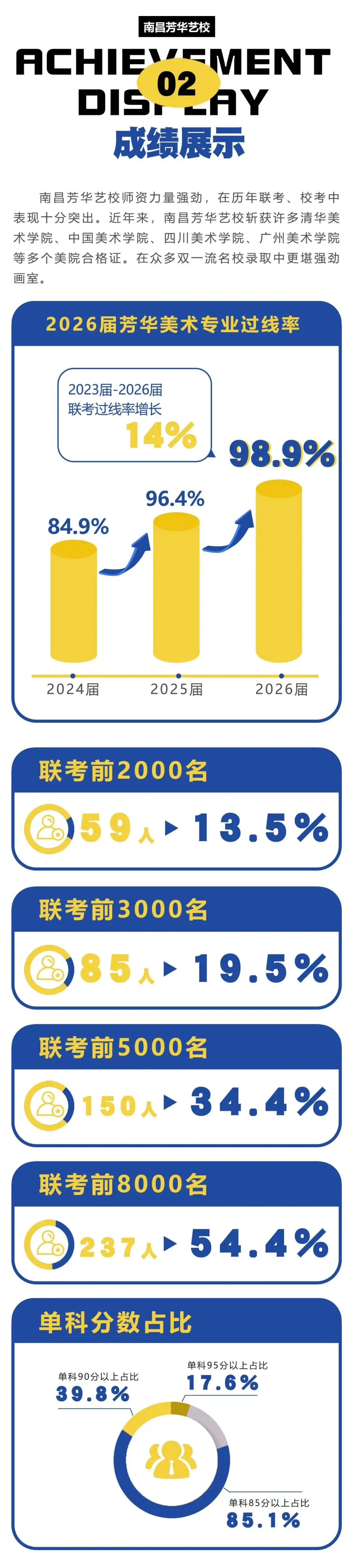 | ◎2024届斩获江西省联考状元◎2024届斩获江西省联考探花◎2024届斩获江西省联考前500名共58余席◎2024届斩获江西省联考前1000名共126余席◎2023届斩获江西省联考前100名共14席◎2023届斩获江西省联考前100名共5席◎2023届斩获各大美院合格证40余张 ◎2023届斩获江西省联考前1000名共135席 ◎2021届斩获江西省联考状元 ◎2021届斩获江西省联考榜眼 ◎2021届斩获江西省联考探花 ◎近年累计斩获音乐学院合格证246余张 ◎近年累计斩获985/211高校合格证200余张 |