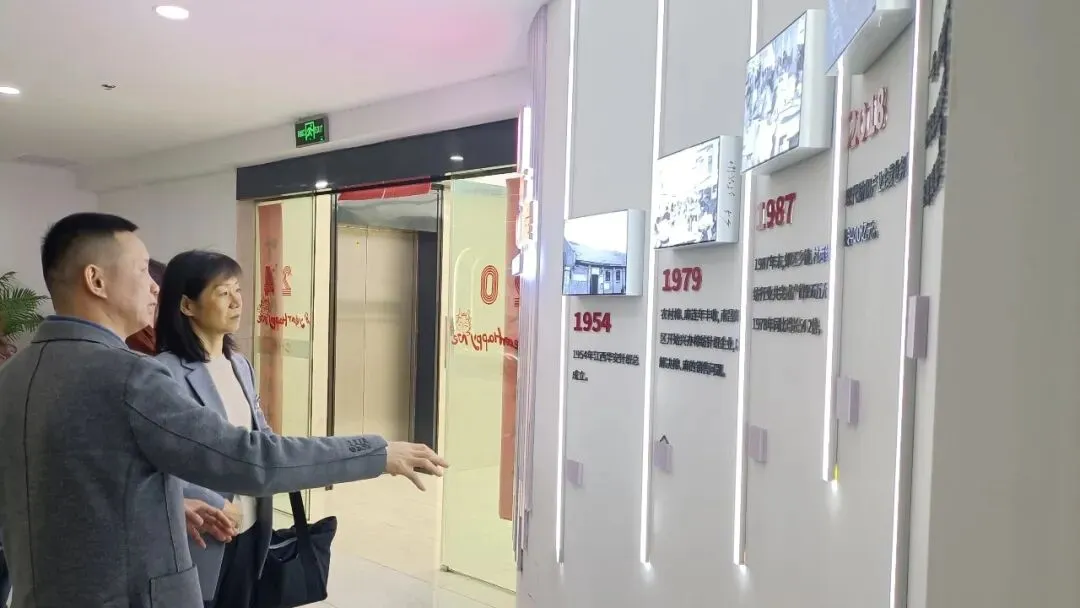调研组一行首先参观了商会的文化墙,在我会会长胡松华的介绍与讲解下,详细了解了南昌市现代针纺产业的发展历程以及商会自成立以来的建设成果与运行情况。