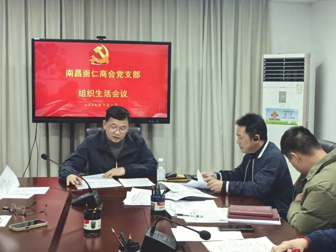 2026年3月4日晚,南昌崇仁商会党支部在商会西湖办会议室召开2025年度组织生活会进行民主评议党员工作。会议由党支部书记聂振华主持,支部全体党员参加会议。
