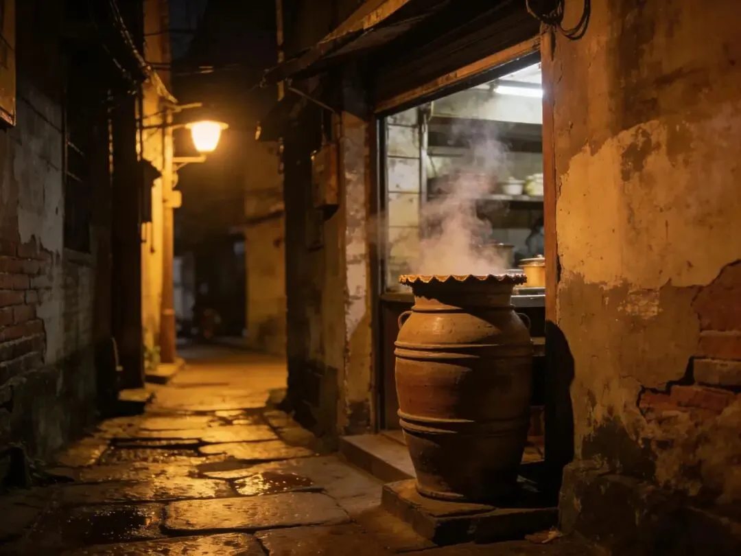 我往右拐,巷子越走越窄,路灯昏黄,电线在头顶织成网。那家店真的开在巷子底,连招牌都没有,门口摞着半人高的瓦罐,热气从罐口的封膜边缘丝丝缕缕地溢出来。