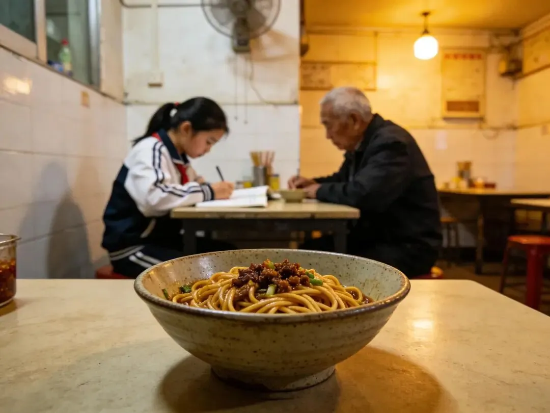 年糕软糯,桂花香得恰到好处。隔壁桌坐着一个穿校服的女孩,埋头写作业,偶尔抬头咬一口拌粉。她奶奶坐在对面,用南昌话絮絮叨叨地说着什么。我听不懂,但那语调软软的,像瓦罐里炖了三个小时的汤。