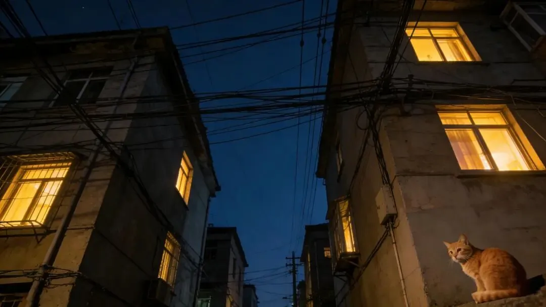 没有看地图,也没有查攻略,只是凭直觉往灯光暗的地方钻。老城区的夜有一种奇异的温柔——楼房不高,阳台上的晾衣杆伸出来,晾着白天晒过的被子;楼下的小卖部门口,几个老头围坐在一起下象棋,旁边蹲着一只橘猫,尾巴一甩一甩的;水果摊还亮着灯,甘蔗削了皮,切成段,白生生地泡在水里。