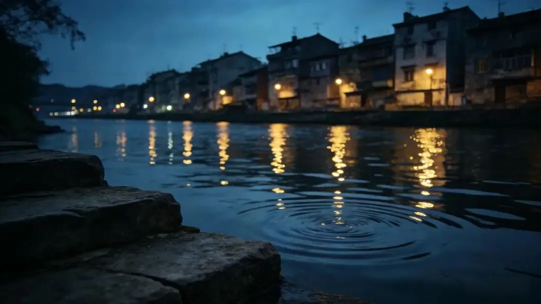 穿过一条更窄的巷子,眼前豁然开朗——是抚河。河岸的步道上没什么人,路灯隔着柳树投下斑驳的光。对岸的老居民楼亮着零星的灯火,倒映在水里,被风揉碎了,又慢慢聚拢。