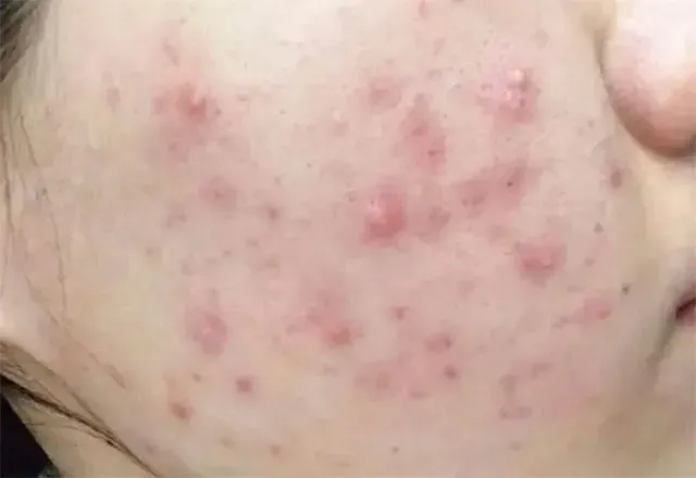 4. 发炎了:细菌的代谢产物让皮肤发炎,就长出又红又疼的痘痘,严重时会成脓疱、结节或囊肿。