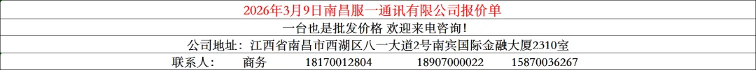 2026年3月9号南昌服一报价单