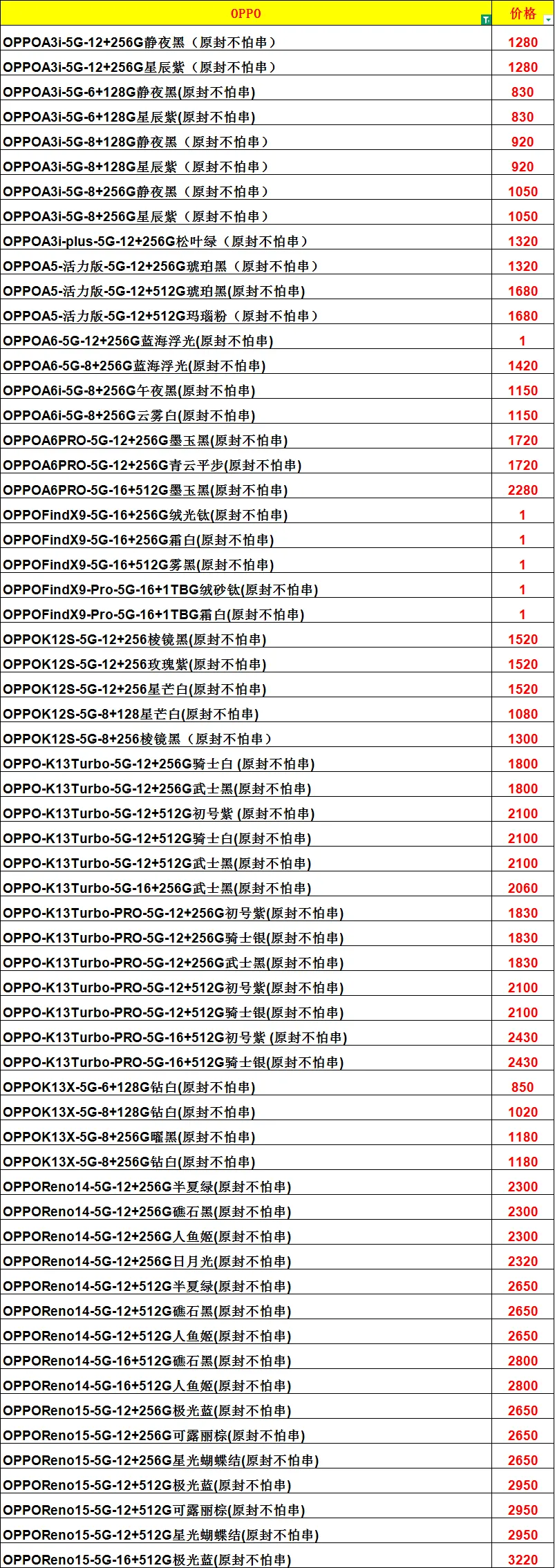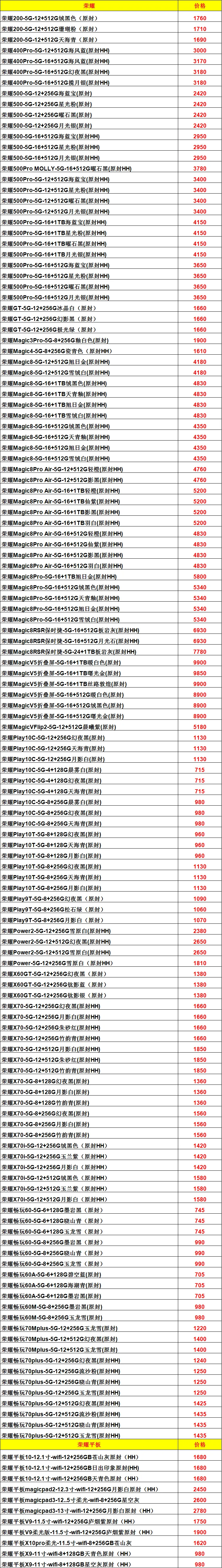 >2026年3月9号南昌服一报价单