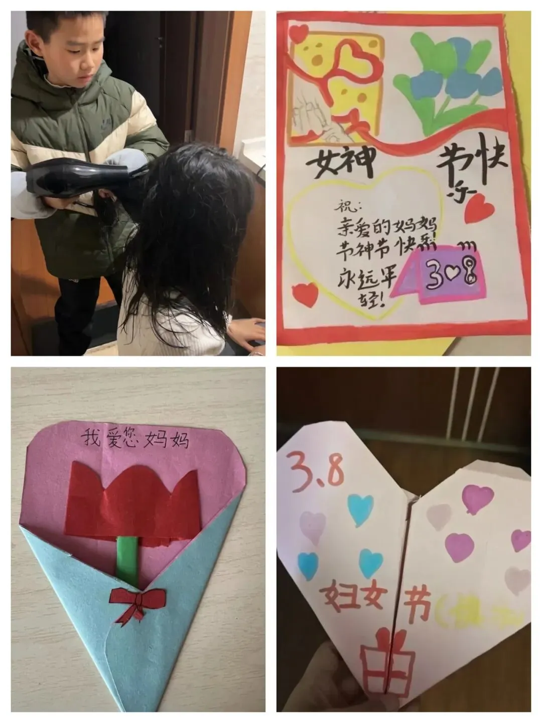 与此同时,学校发起感恩母亲主题活动,号召同学们用行动表达爱:为妈妈捶一次背、洗一次脚,用温柔举动舒缓妈妈的疲惫;主动承担家务,用小小肩膀为妈妈分担辛劳;亲手制作贺卡、绘画,把最真的心意藏进作品;给妈妈一个拥抱,大声说出:妈妈,您辛苦了!一次陪伴,一份手工,一句告白,都是孩子心中最纯粹的感恩。家校同心,以爱润心,让感恩之花在每个家庭温暖绽放。
