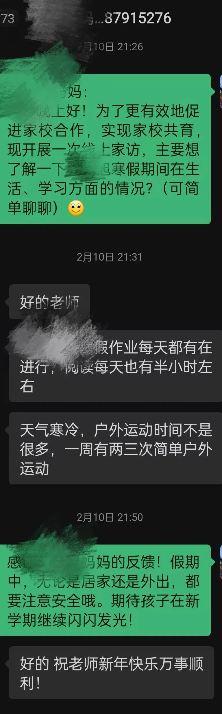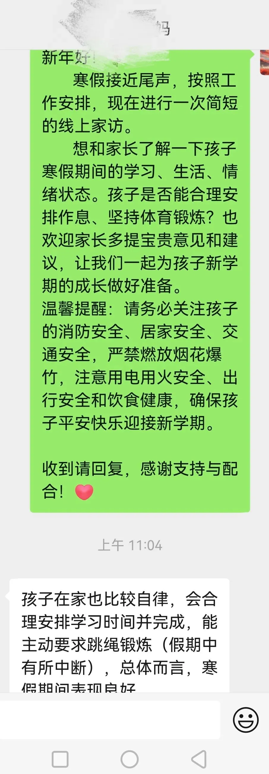 没有华丽的辞藻,只有真切的关怀;没有刻意的形式,唯有走心的交流。一句句贴心的叮嘱,一次次耐心的沟通,让家长感受到学校的用心与责任,也让老师读懂了家庭的期盼与支持。家长们纷纷表示,十分感谢学校和老师们对孩子的悉心关怀与悉心教导,今后定会全力配合学校工作,携手助力孩子全面发展、向阳生长。