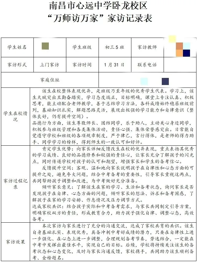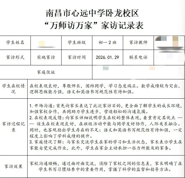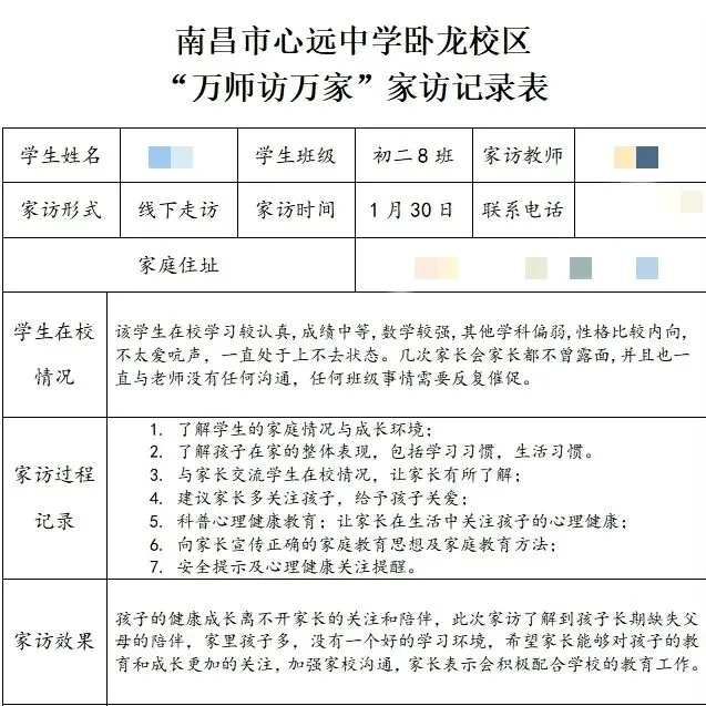 以爱为桥 共育花开 | 南昌市心远中学卧龙校区温情家访,筑牢家校连心桥