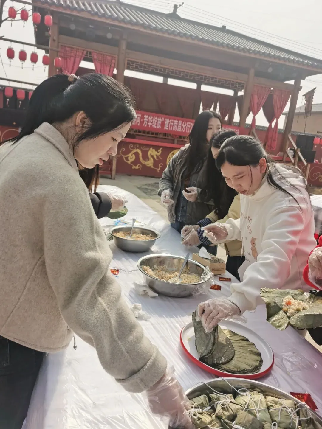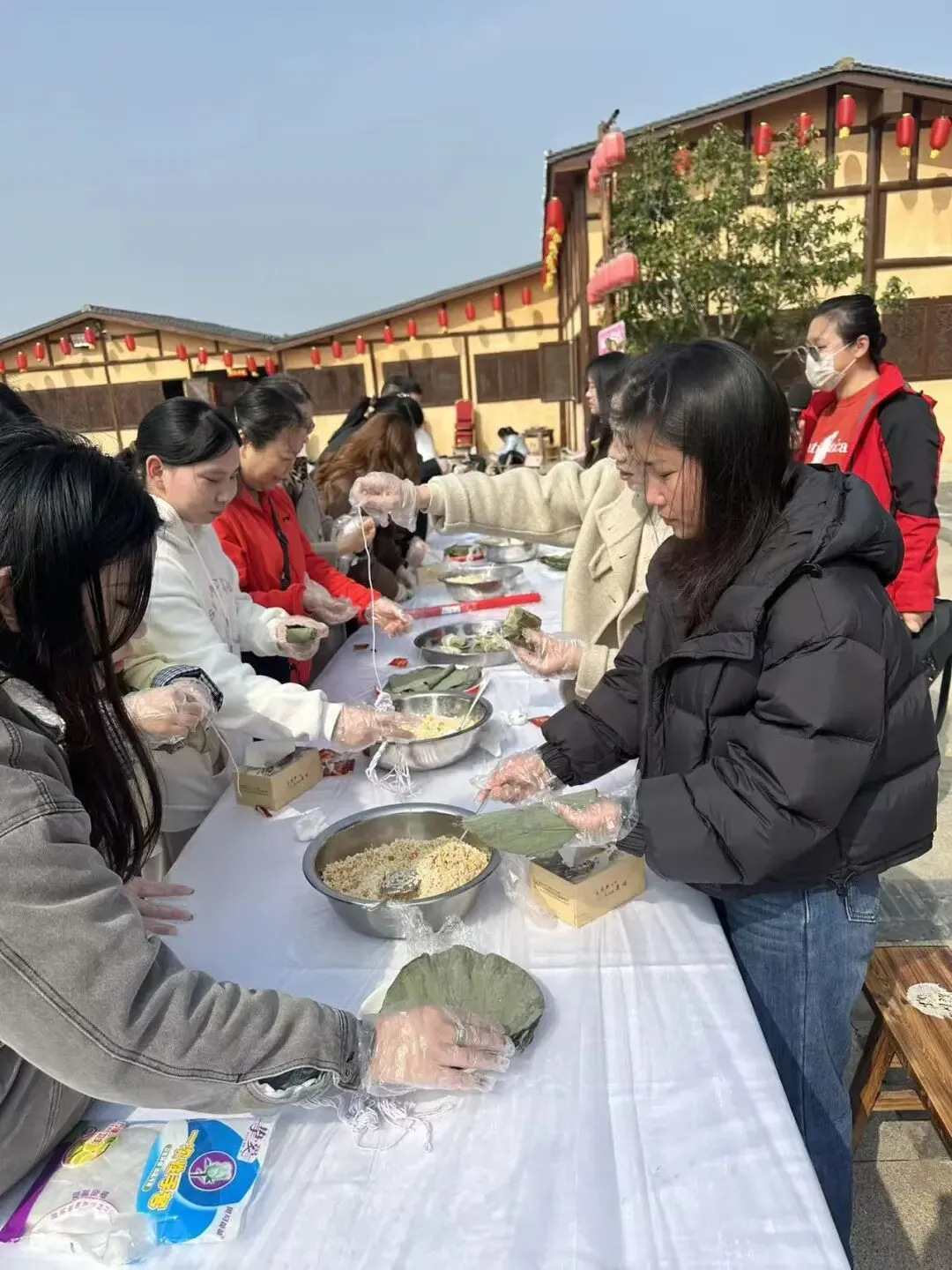 午间时分,一场充满烟火气息的“手工制作荷叶饭”活动让节日氛围愈发浓厚。大家围在一起,将糯米、鲜肉与荷叶的清香巧妙融合,亲手制作出一道道别具风味的佳肴。