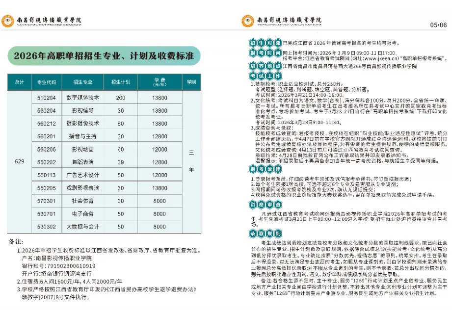 >南昌影视传播职业学院2026高职单招招生简章
