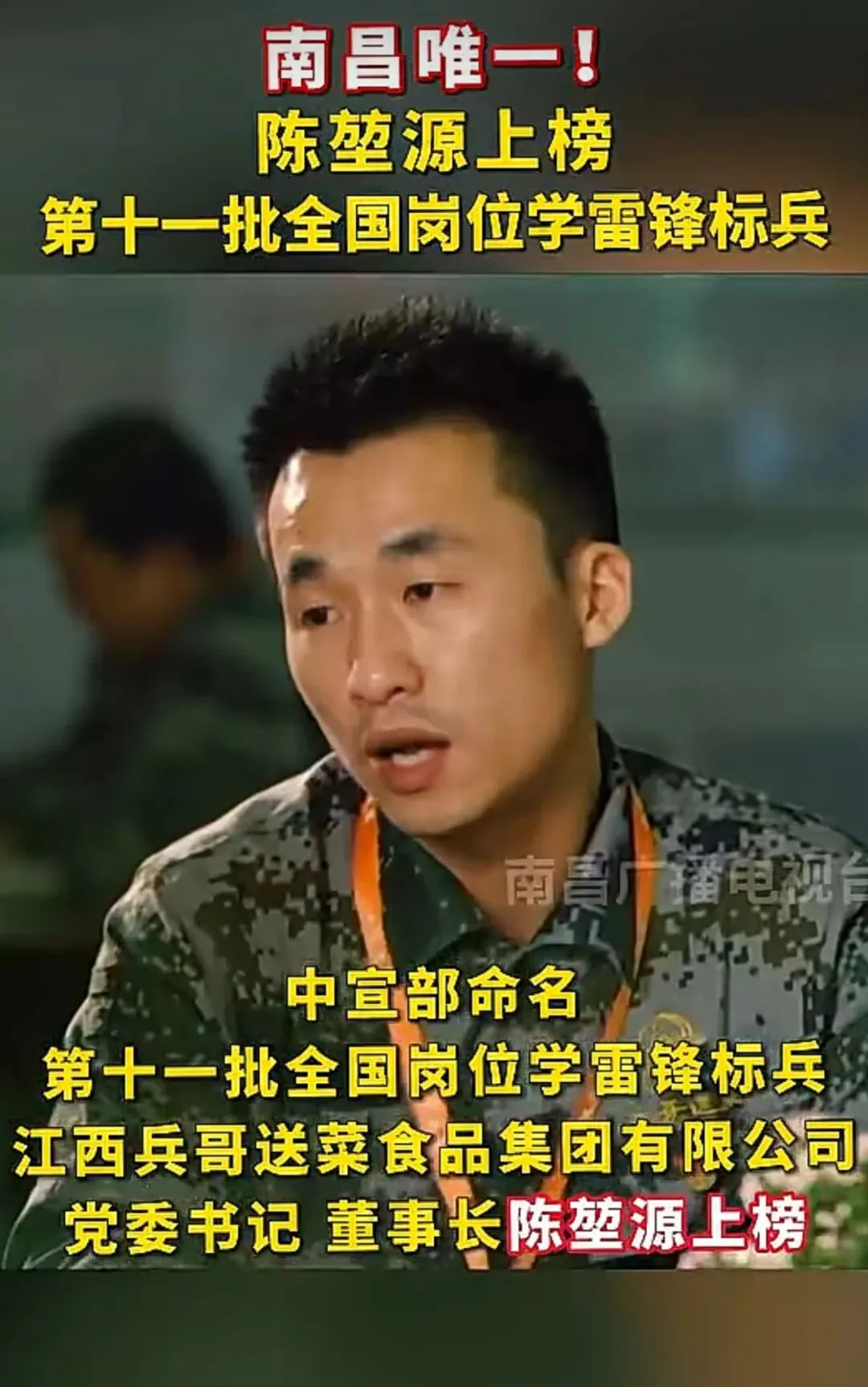 近日,中共中央宣传部命名第十一批全国岗位学雷锋标兵,共100个集体和个人入选。其中,南昌市新生代企业家商会会长、江西兵哥送菜食品集团有限公司党委书记、董事长陈堃源光荣上榜,成为江西省本批唯一入选的企业家代表。