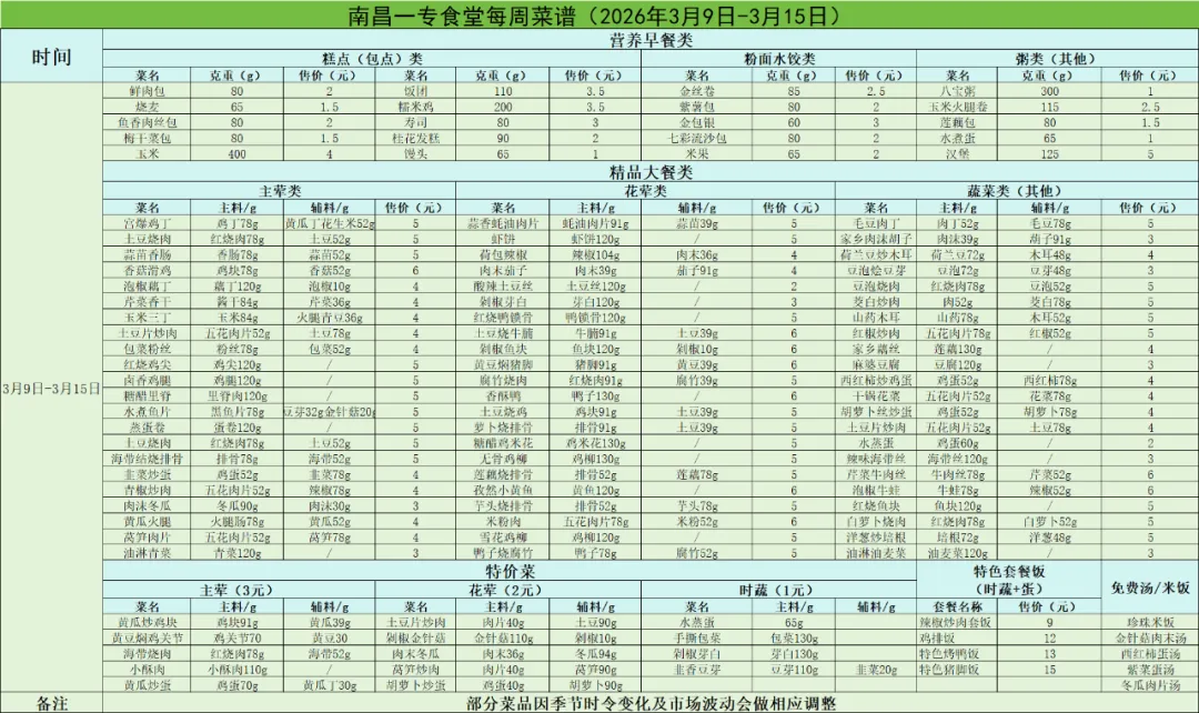 惊蛰食养润春意,营养护航伴成长 | 南昌一专校园食谱公示(3月9日—3月15日)