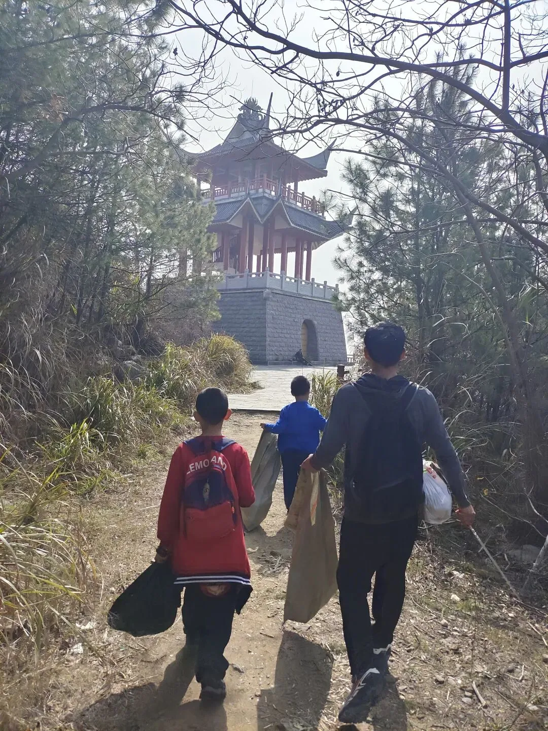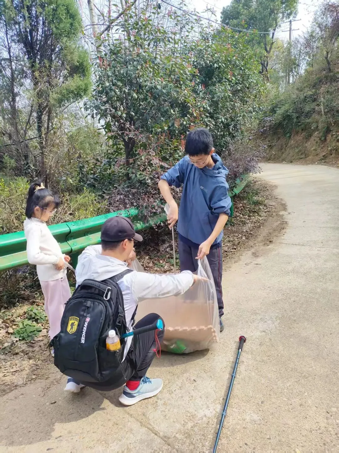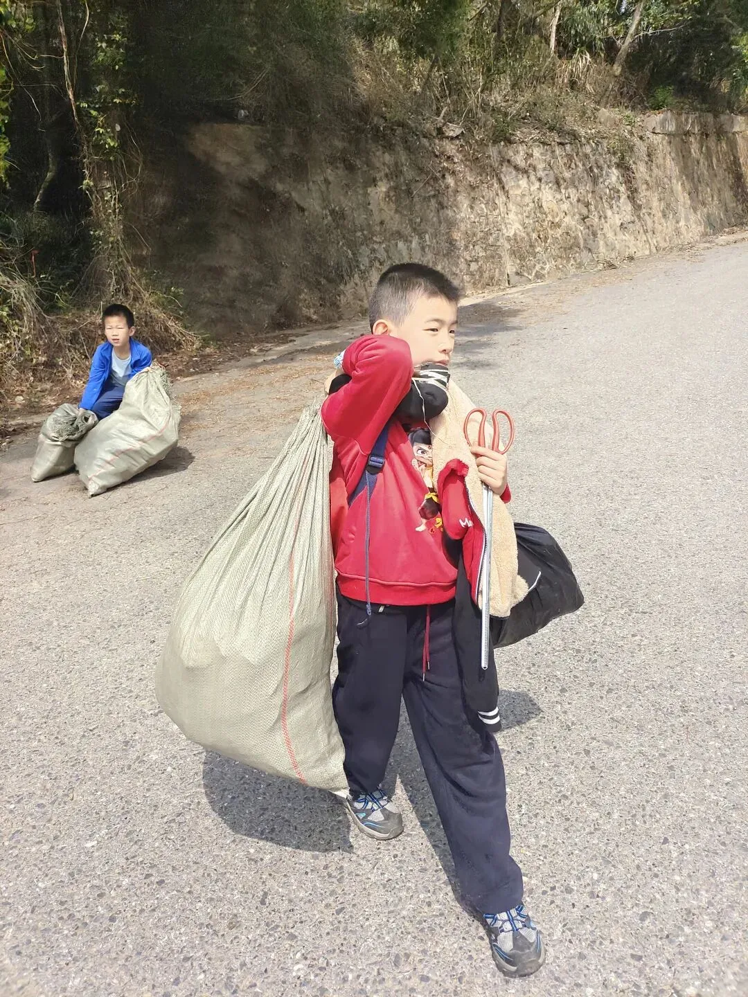 下午的队伍里小朋友们是主力,他们分工合作,捡的特别起劲,爬山也不显得累了: