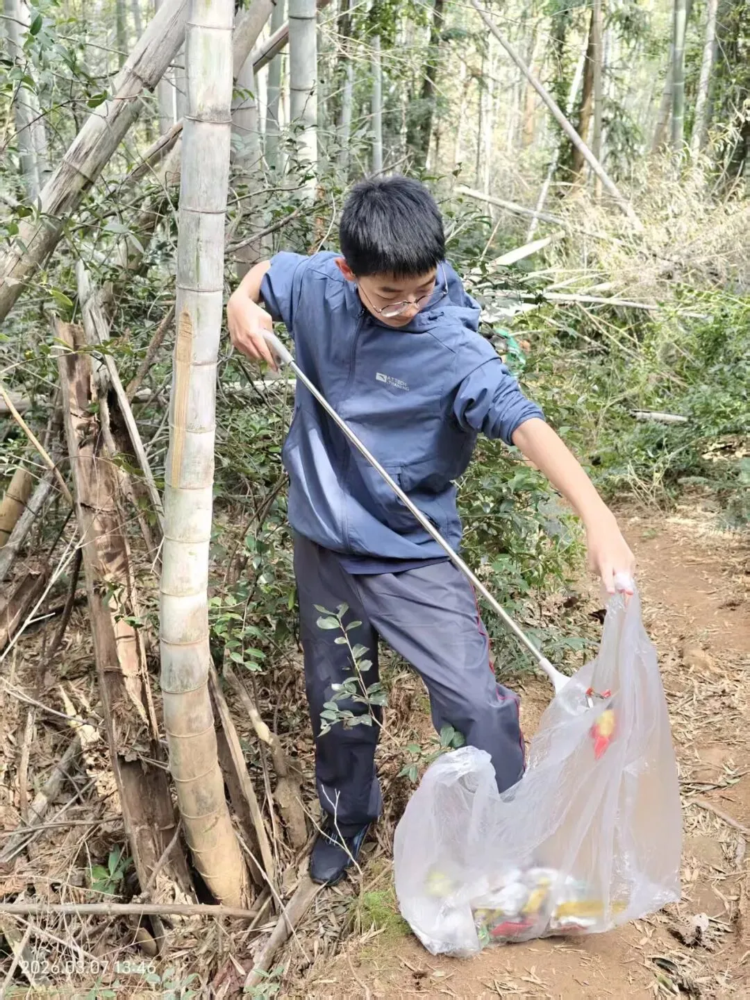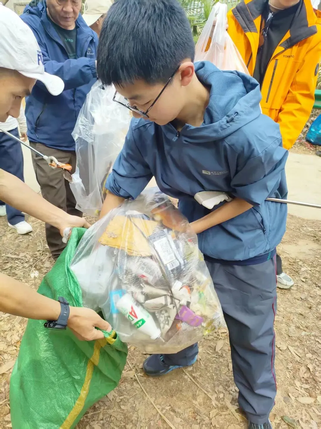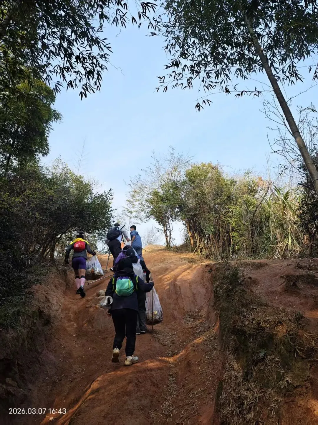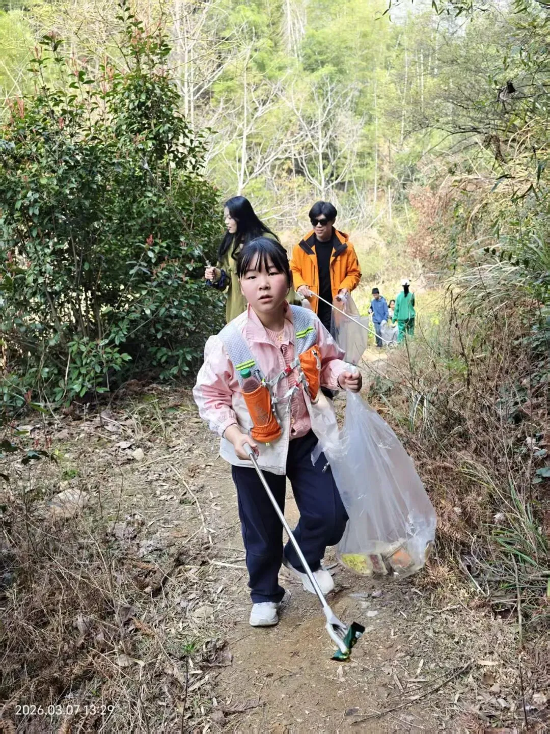 下午的队伍里小朋友们是主力,他们分工合作,捡的特别起劲,爬山也不显得累了: