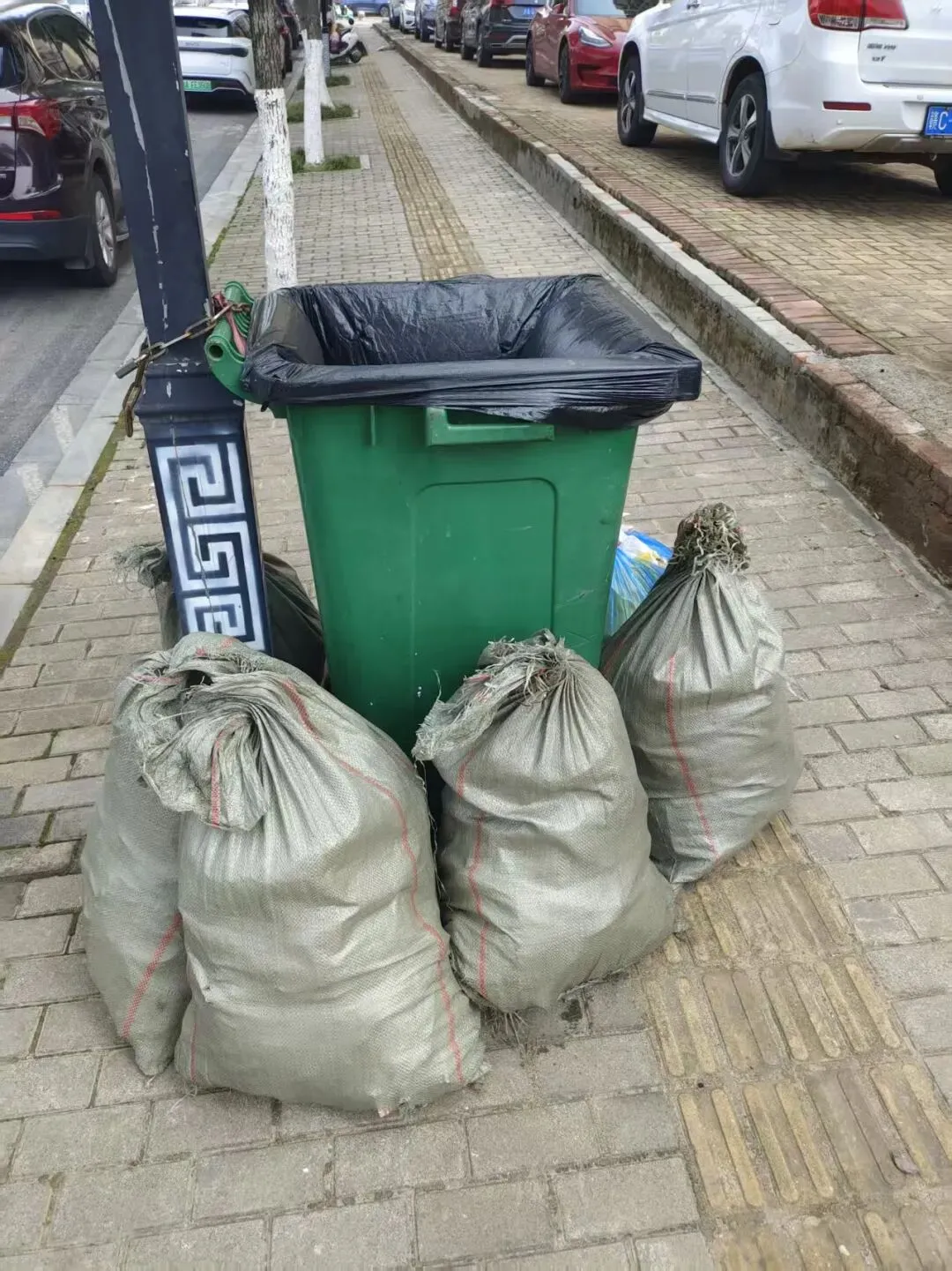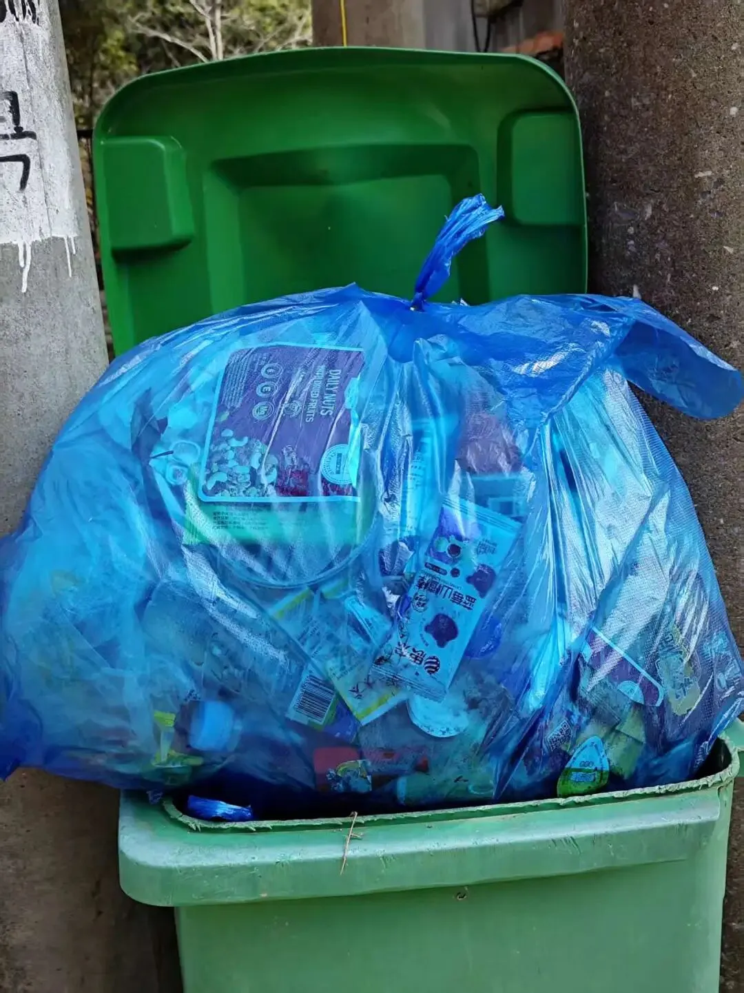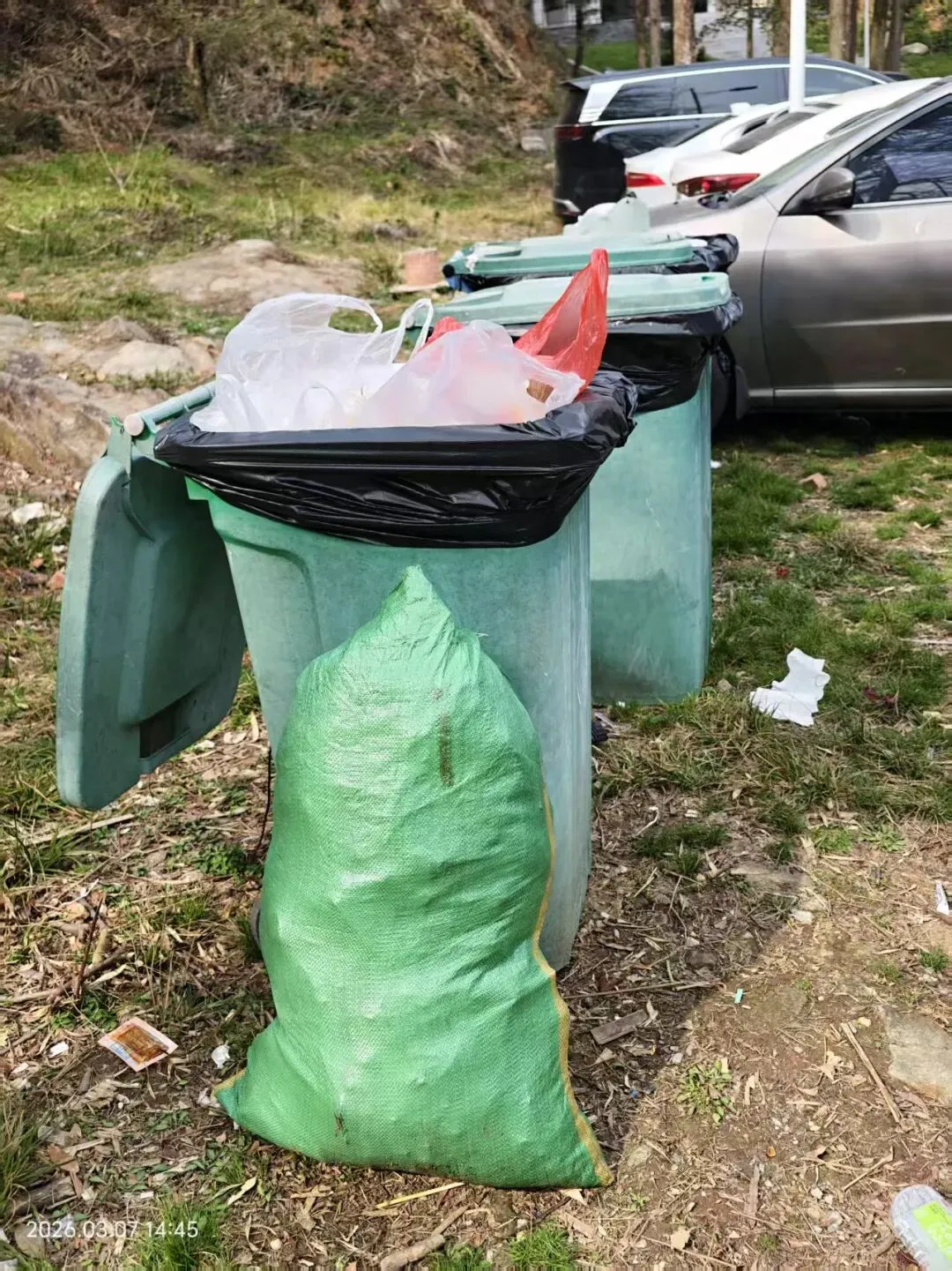最后我们把垃圾运送到山下小区边的垃圾桶边