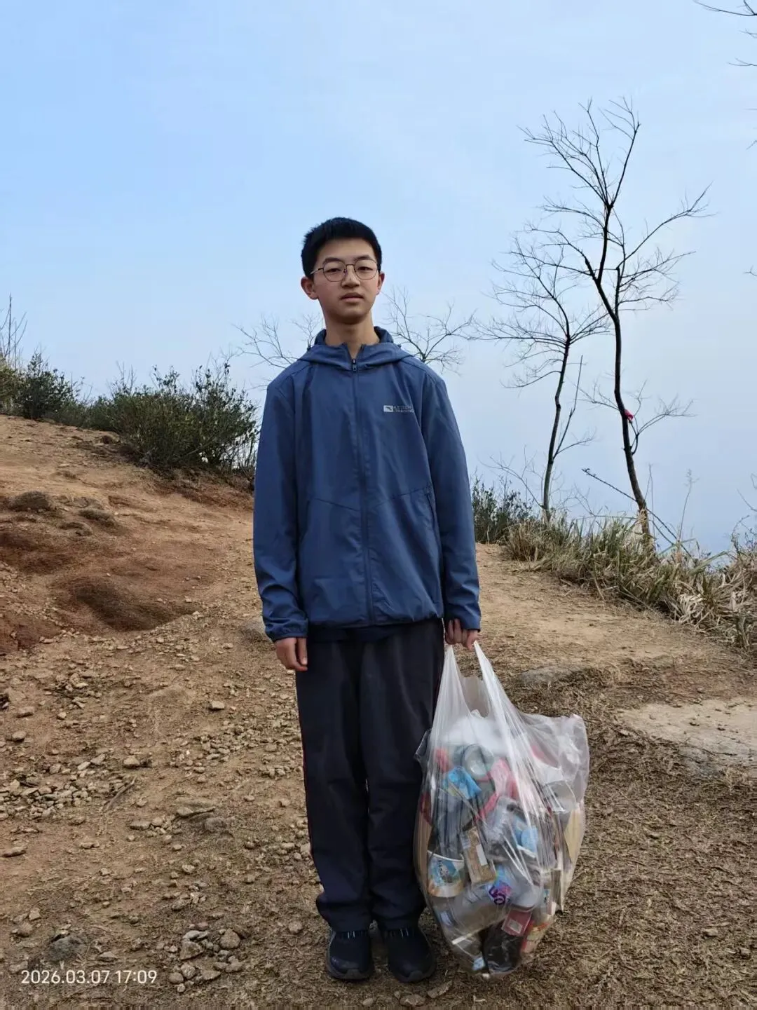 捡满了一麻袋垃圾,让游侠先带下山去