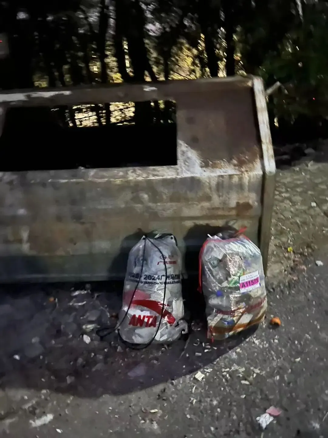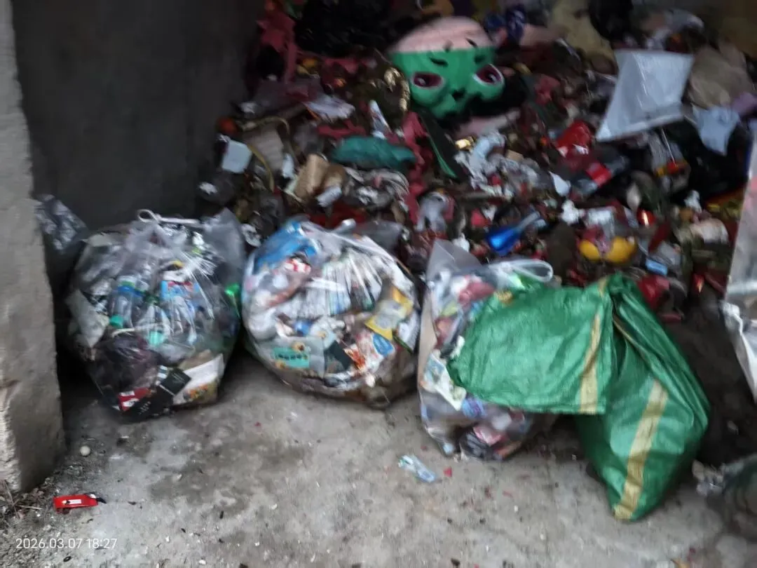 东哥捡了两袋垃圾,运送到下面的垃圾站。