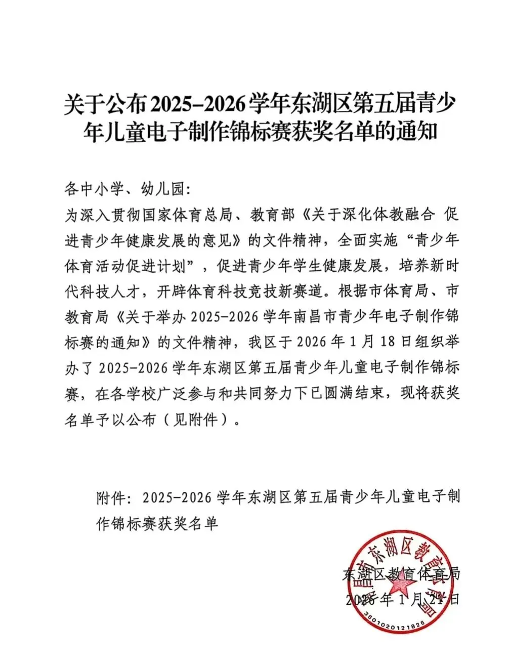【灵创•喜报】南昌市百花洲小学教育集团北湖校区在2026年东湖区青少年电子锦标赛中斩获佳绩!