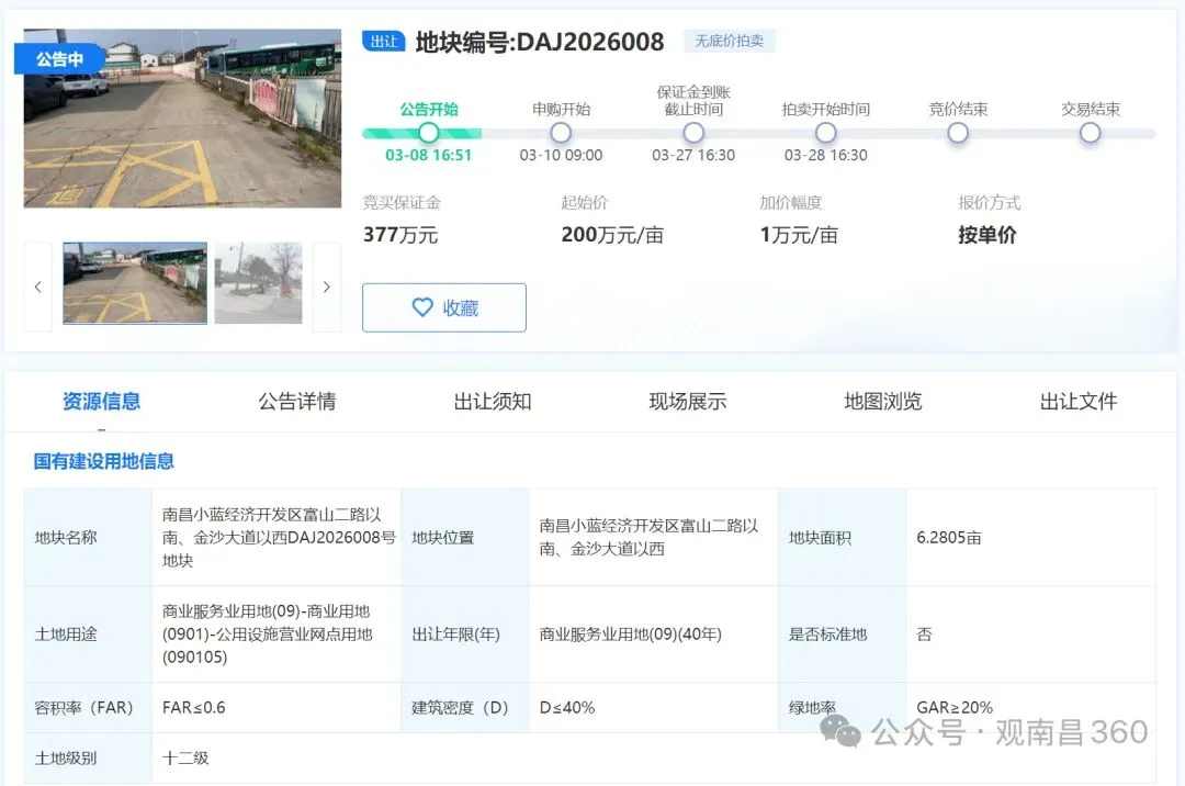 3月9日,南昌县一宗公用设施营业网点商业用地正式挂牌出让,地块编号DAJ2026008,将于3月28日上午公开竞拍。