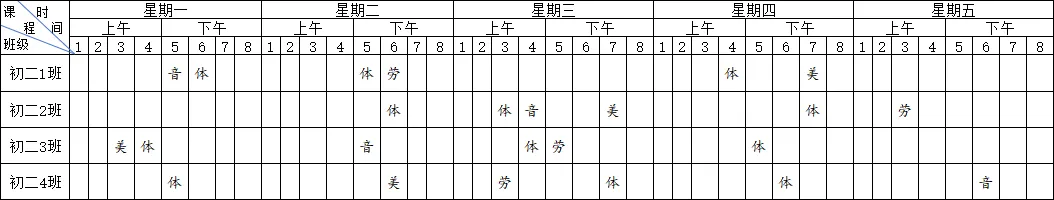 春风送暖,新程已启。为规范办学、阳光教学,落实“双减”与五育并举要求,南昌市第二十三中学2025~2026学年下学期体美劳课程安排已全面确定。现将全校各年级、各班级新课表正式公布,接受师生、家长与社会监督,让教学更透明、成长更清晰。