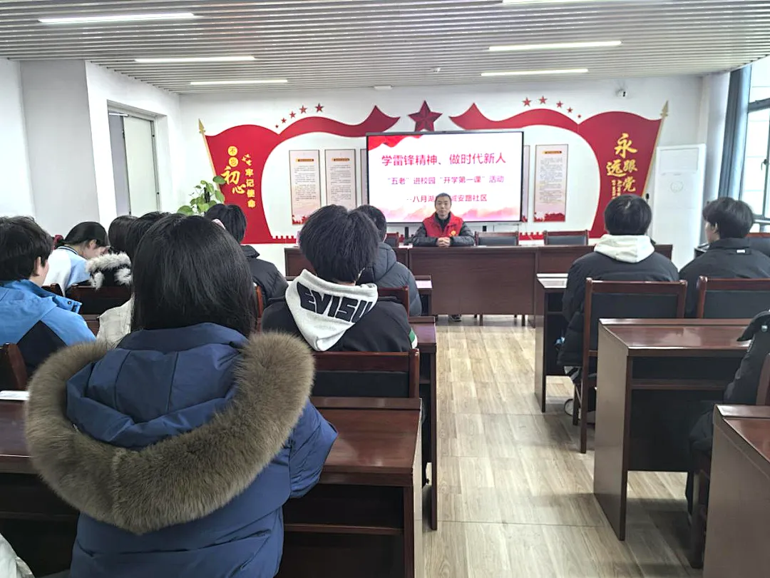 近日,诚安路社区新时代文明实践站组织“五老”志愿者走进辖区南昌市文演高级中学,开展“学雷锋精神、做时代新人”主题宣讲活动,为同学们带来一堂生动鲜活、温暖有力的思政教育课。活动中,社区“五老”志愿者结合自身经历,用朴实真挚的语言,讲述雷锋同志助人为乐、爱岗敬业、无私奉献的感人故事,深刻阐释雷锋精神的时代内涵。