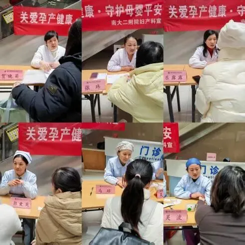 3月5日上午东湖院区产科义诊(贺晓菊副主任、张玮副主任、乐露露副主任医师、郭爱英护士长、马琼护士、吴波护士与孕妇课堂同步开展(黄永琪护士、左娜护士等)。义诊现场前来咨询的孕产妇络绎不绝,医护人员耐心细致答疑解惑,还贴心提供血压测量服务,并为大家发放专属优惠券。孕妇课堂同步开展,现场进行镇痛分娩实操教学,邀请家属沉浸式体验镇痛分娩,还设置课后知识问答互动环节,为参与人员送上精美小礼品。