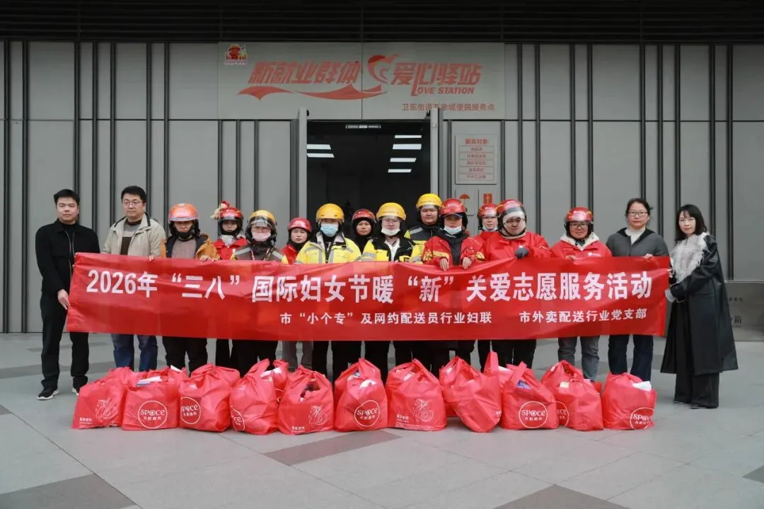 活动现场,南昌市“小个专”及网约配送行业妇联相关同志为到场的女骑手代表们送上了精心准备的节日祝福与暖心礼包。礼包内含实用的保温杯、洗护用品等,寄托着对一线女性劳动者的深切关怀。工作人员与女骑手们进行了亲切交流,细致询问了她们在日常配送工作中的情况、面临的挑战以及生活需求,对她们风雨无阻、坚守岗位的敬业精神表示充分肯定和感谢,并鼓励她们继续发扬巾帼风采,在平凡的岗位上创造不平凡的业绩。